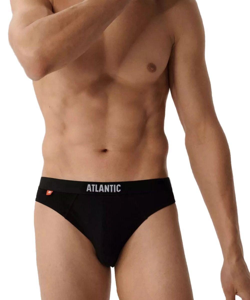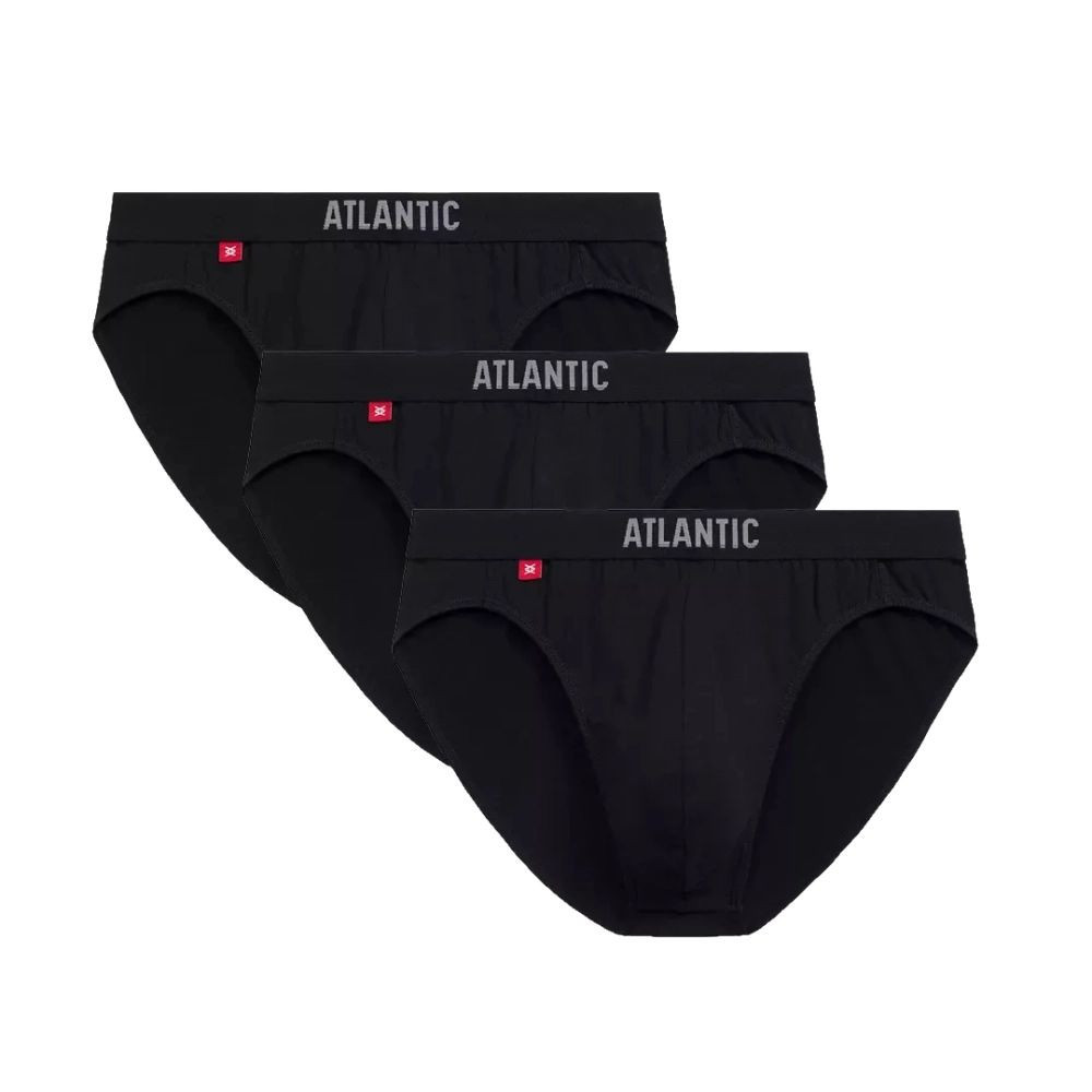 Pánské slipy 3 pack 094 black Atlantic - černá barva - z vysoce jakostní bavlny - 3ks v balení - komfortní guma s nášivkou ATLANTIC - sportovní střih - výhodné balení 3 kusů