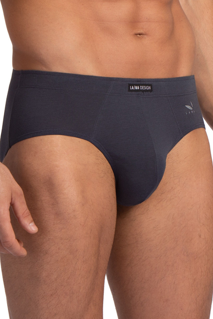 Pánské slipy z měkkého bambusového úpletu s elastickým pasem, přiléhající k tělu, pohodlné a nositelné, v krabičce v černé a grafitové barvě.