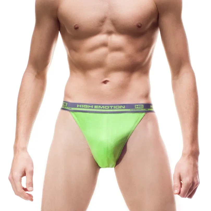 Pánské slipy typu tanga, bavlněné s přídavkem elastanu. Mají plochou gumu a nápis High Emotions.