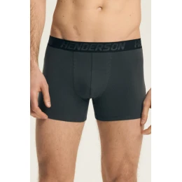 Model wyróżnia się szeroką, miękką gumą w pasie z subtelnym logo Henderson, która stabilnie utrzymuje bokserki na miejscu bez uczucia ucisku. Gładka lub delikatnie wzorzysta struktura materiału nadaje im nowoczesny, sportowy charakter. Przylegający krój z krótszą nogawką sprawdzi się zarówno na co dzień, jak i podczas aktywności.