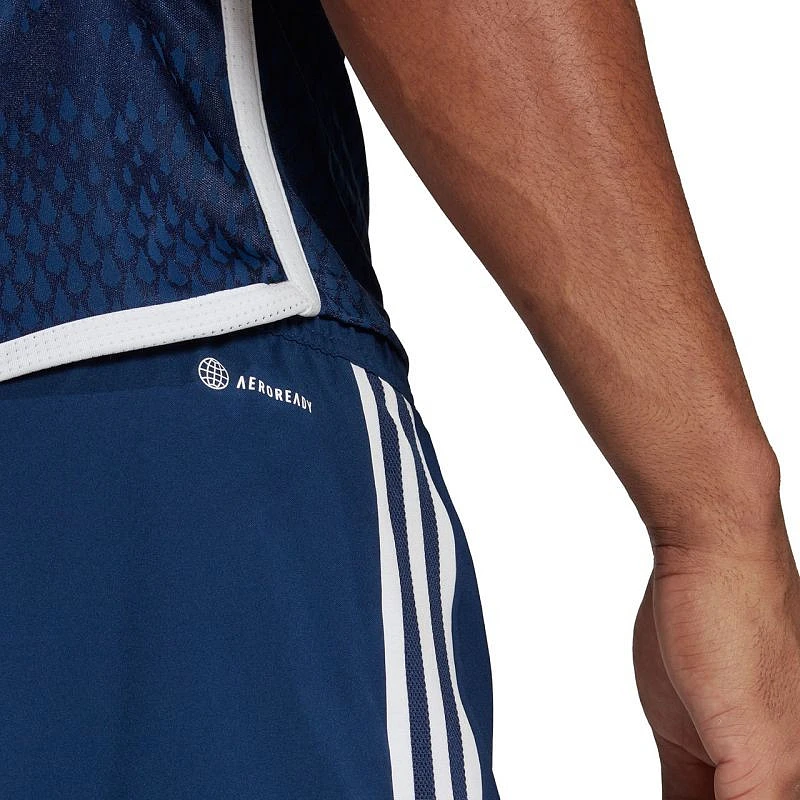 Pánské šortky adidas Tiro 23 Competition Match tmavě modré HT5697 Pánské šortky adidas jsou perfektní šortky z řady Tiro 23. Mají elastický pas nastavitelný pomocí vnitřní stahovací šňůrky. Technologie Aeroready pomáhá odvádět přebytečnou vlhkost do vnějších vrstev. Materiál: 100% recyklovaný polyester.
