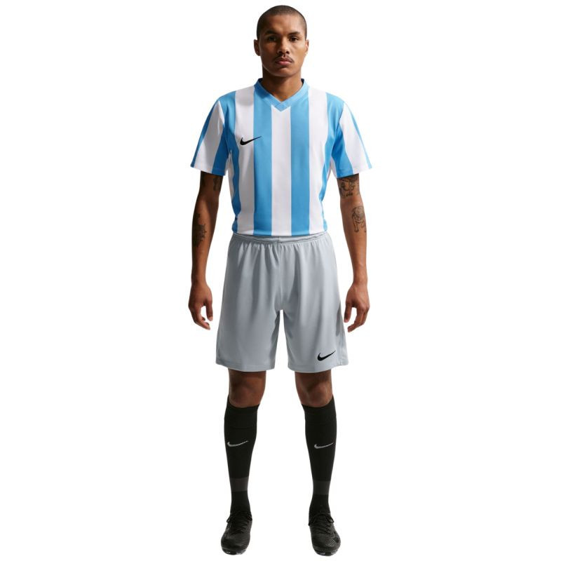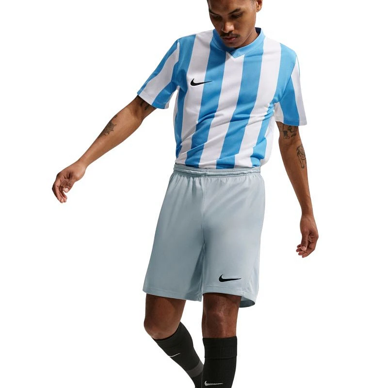 Spodenki męskie Nike Dry Park III NB K jasnoszare BV6855 012 Zadbaj o pełne skupienie na meczu, postaw na nieograniczoną swobodę ruchów i sięgnij po męskie spodenki Nike. Lekka, szybkoschnąca tkanina zapewnia doskonałe właściwości oddychające, dzięki czemu pozostajesz w pełni skupiony na rozgrywanej akcji. Technologia Dri-FIT, odprowadzająca pot z powierzchni skóry na zewnątrz. Standardowa długość i dopasowany krój. Elastyczny pas z siateczkową podszewką. Wybierając spodenki Nike, przy produkcji której wykorzystano poliester z recyklingu, wspierasz naturalne zasoby środowiska i zmniejsza emisję szkodliwych substancji. Materiał: 100% poliester z recyklingu