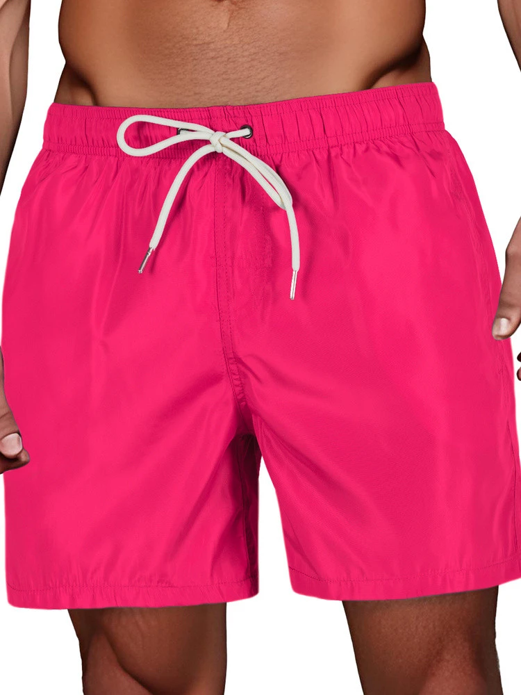 Męskie szorty kąpielowe z lekkiego i szybkoschnącego materiału, idealne na plażę, basen czy aktywność w wodzie. Elastyczny pas z kontrastowym troczkiem zapewnia wygodne dopasowanie. Boczne kieszenie oraz kieszonka z klapką z tyłu dodają praktyczności. Sprawdzą się perfekcyjnie w upalne dni.