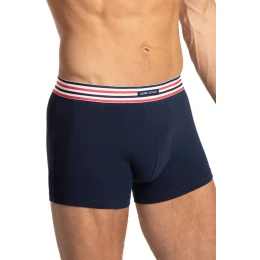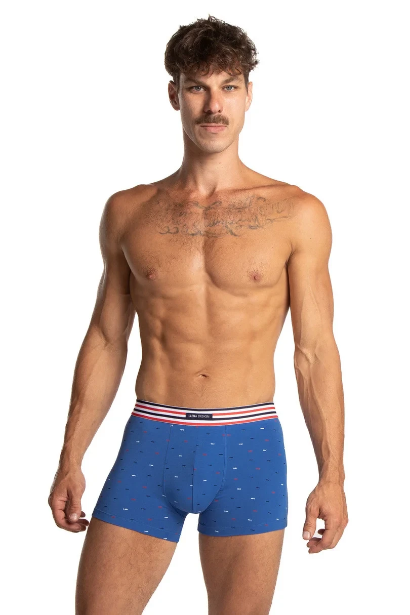 LAMA M-1066 to męskie bokserki, które łączą klasykę z nowoczesnym, sportowym wyglądem. Wykonane z wysokiej jakości dzianiny – 95% bawełny i 5% elastanu – zapewniają znakomitą elastyczność, przewiewność i trwałość. Materiał idealnie dopasowuje się do sylwetki, a płaskie szwy eliminują ryzyko podrażnień.