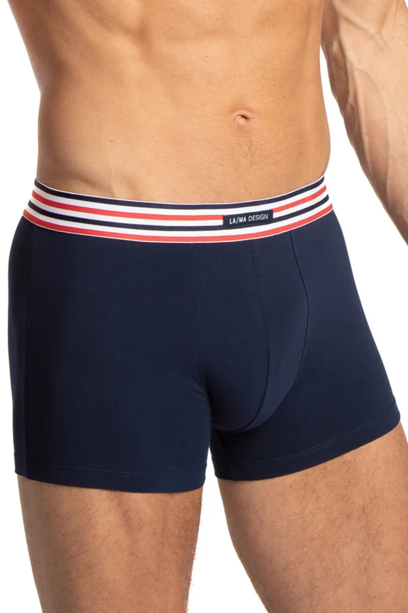 Wyrazisty pas z logo „LAMA DESIGN” i trójkolorowym wykończeniem dodaje bieliźnie charakteru. Elastyczny pas utrzymuje bokserki na właściwym miejscu bez ucisku, zapewniając komfort przez cały dzień – zarówno w pracy, jak i podczas aktywności fizycznej.