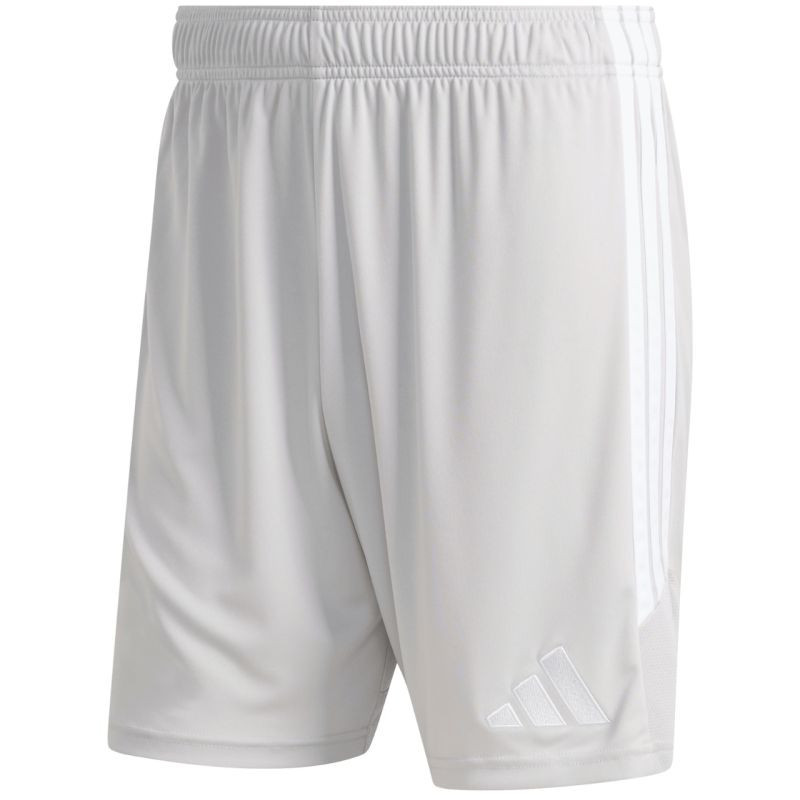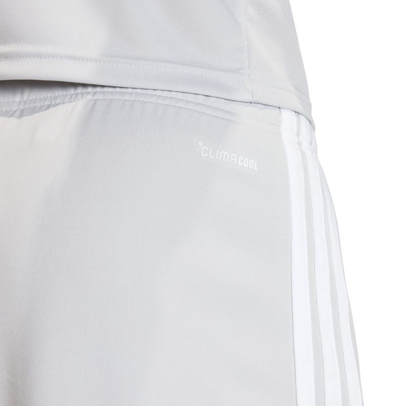 Spodenki męskie adidas Tiro 26 League szare KA8781 Męskie spodenki adidas sprawdzą się podczas rozgrywek. Model pochodzi z linii Tiro. Standardowy krój. Elastyczna talia regulowana wewnętrznym sznurkiem. Technologia Climacool. Paski po bokach. Niewielkie, wyszywane logo. Materiał: 100% poliester pochodzący z recyklingu