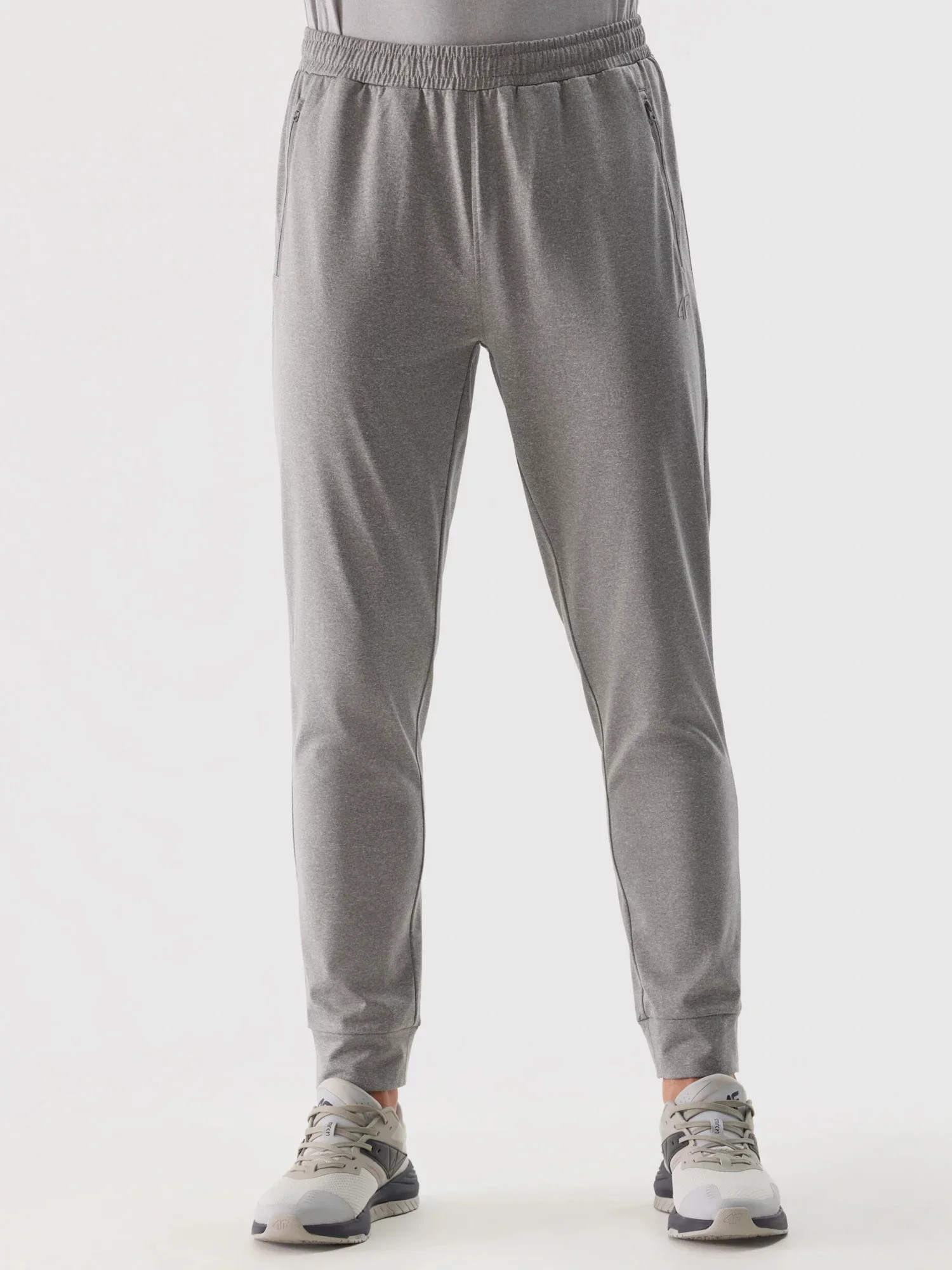 Mají střih regular, který se pohodlně přizpůsobí postavě a zúžené nohavice zakončené elastickým lemem ze základní pleteniny. Vazba na obou stranách interlock pleteniny je stejná. Materiál je odolný a zároveň měkký, dobře padne a absorbuje vlhkost.