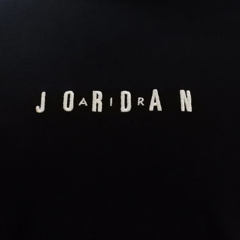 Model DM3182-010 dostępny w czarnej kolorystyce z wyszywaną grafiką „Air Jordan” na froncie oraz logotypem Jumpmana na ramieniu.