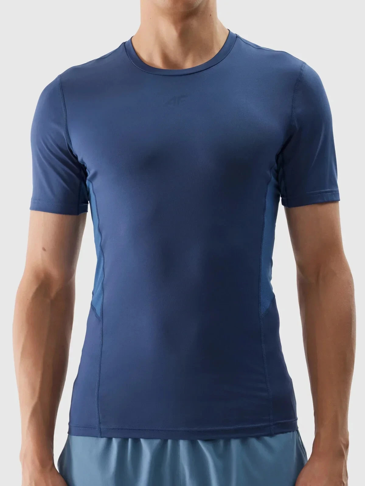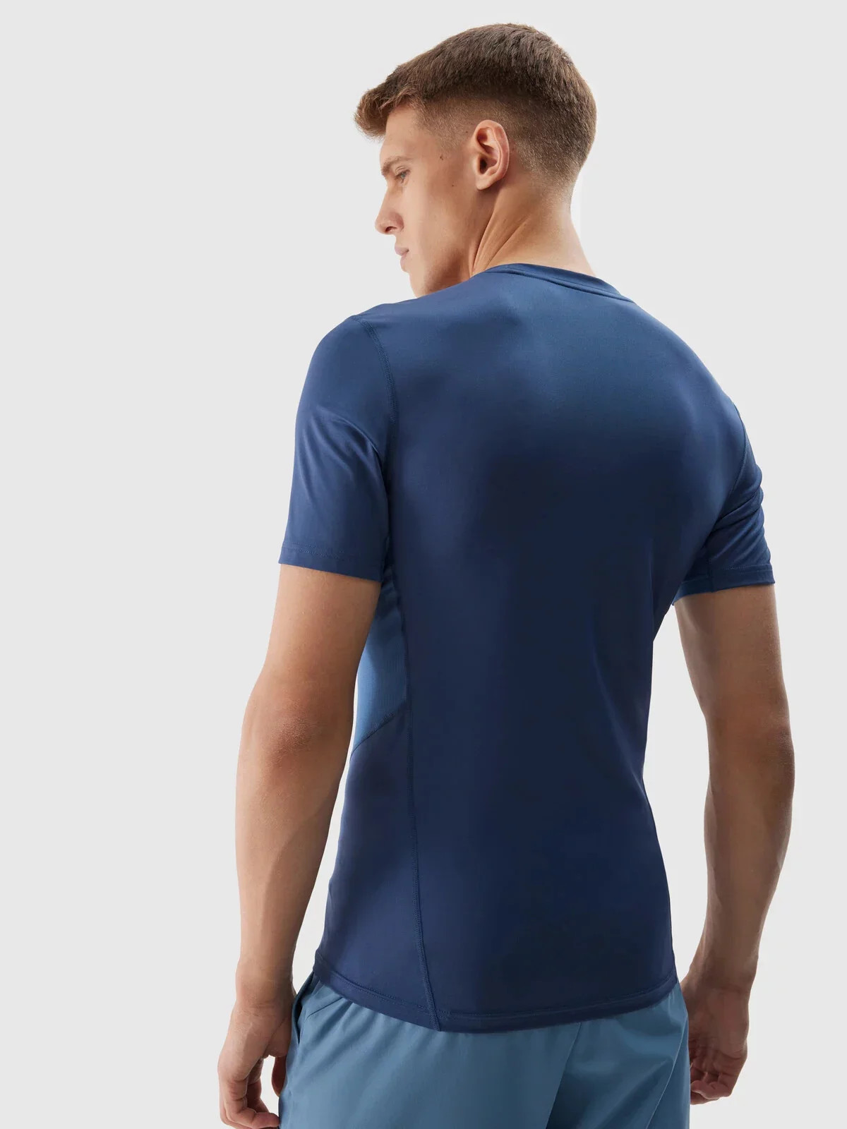 Pánské sportovní tričko slim z recyklovaných materiálů 4F - denim