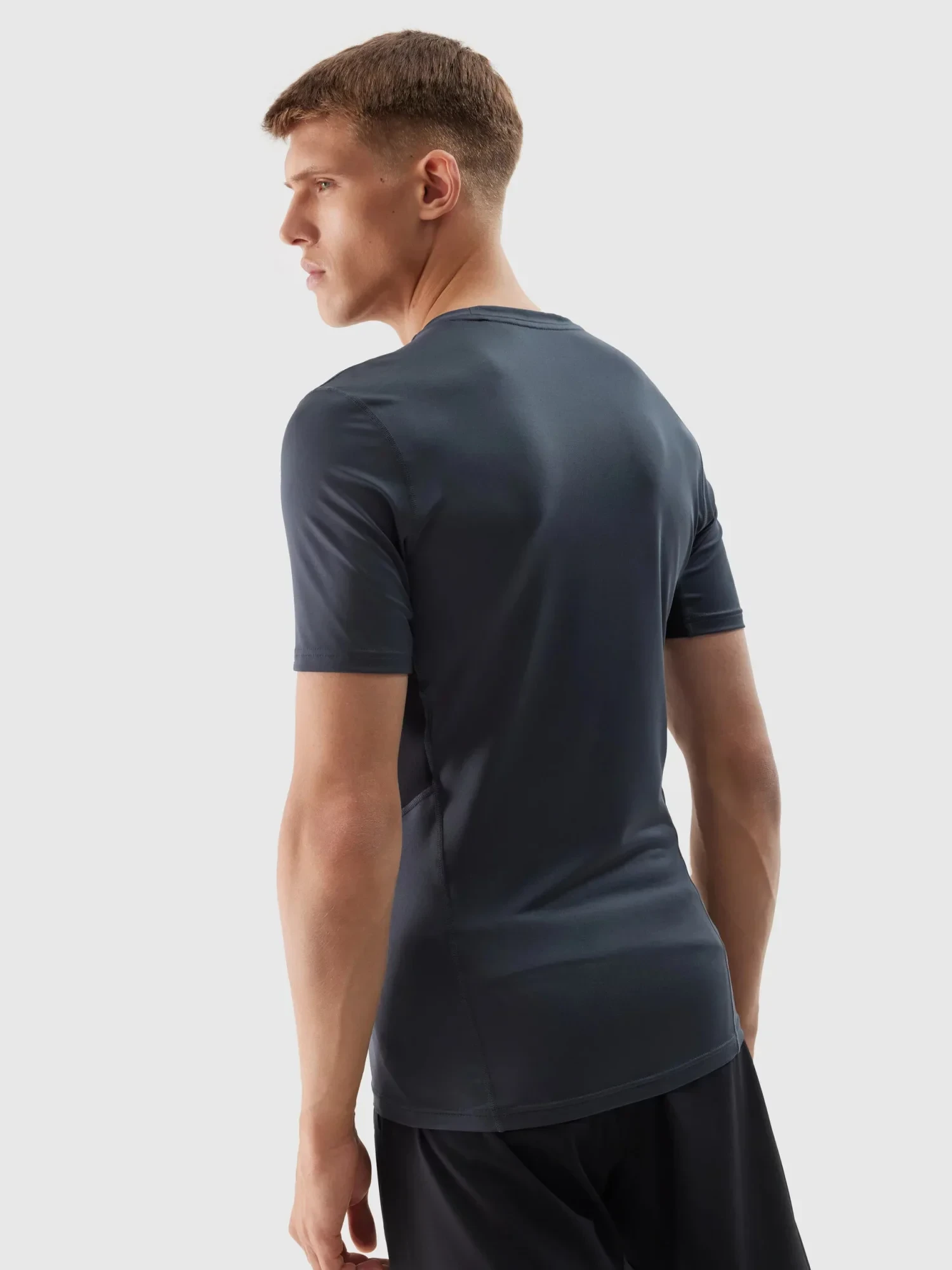 Pánské sportovní tričko slim z recyklovaných materiálů 4F - grafitové