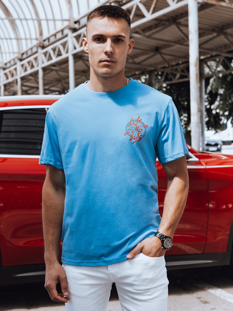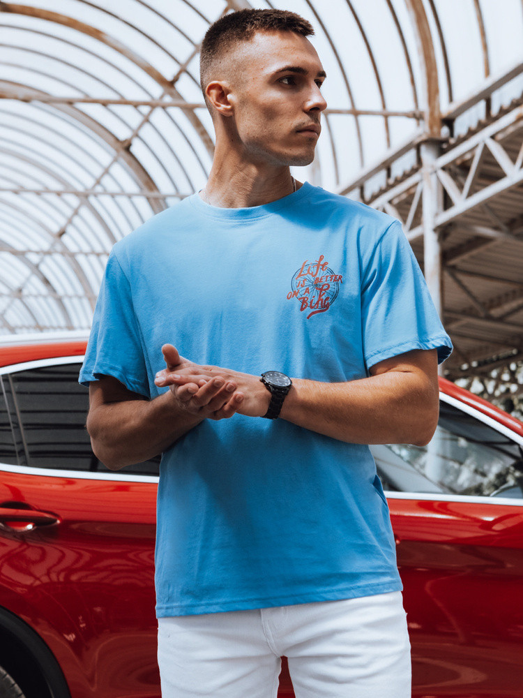 Pánské světle modré tričko s potiskem FashionStreet RX5492