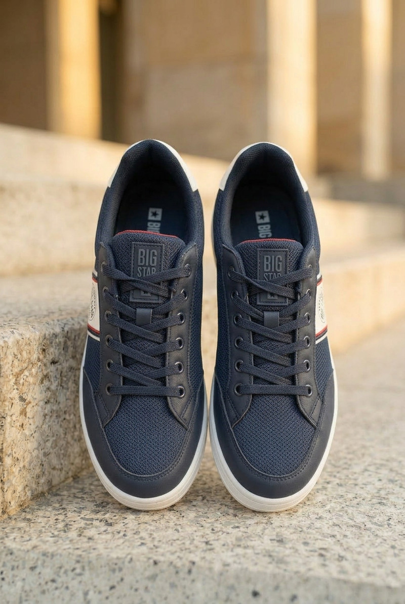 Pánské tenisky Big Star jsou pohodlnou a stylovou volbou pro každodenní nošení. Model je vyroben kombinací textilního materiálu a eko kůže, což mu dodává moderní vzhled a zároveň zajišťuje pohodlí při nošení. Klasické šněrování umožňuje správné přizpůsobení boty noze, čímž zvyšuje stabilitu při chůzi. Na boku svršku je umístěno logo značky Big Star, které zdůrazňuje sportovní charakter modelu a dodává mu módní vzhled. Boty mají měkkou vložku, která zvyšuje komfort nošení a dělá je vhodnými jak pro každodenní aktivity, tak na delší nošení. Univerzální střih umožňuje, aby model skvěle ladil s různými styly – zejména s džíny nebo kalhotami z materiálu. Při výběru velikosti se řiďte tabulkou velikostí.