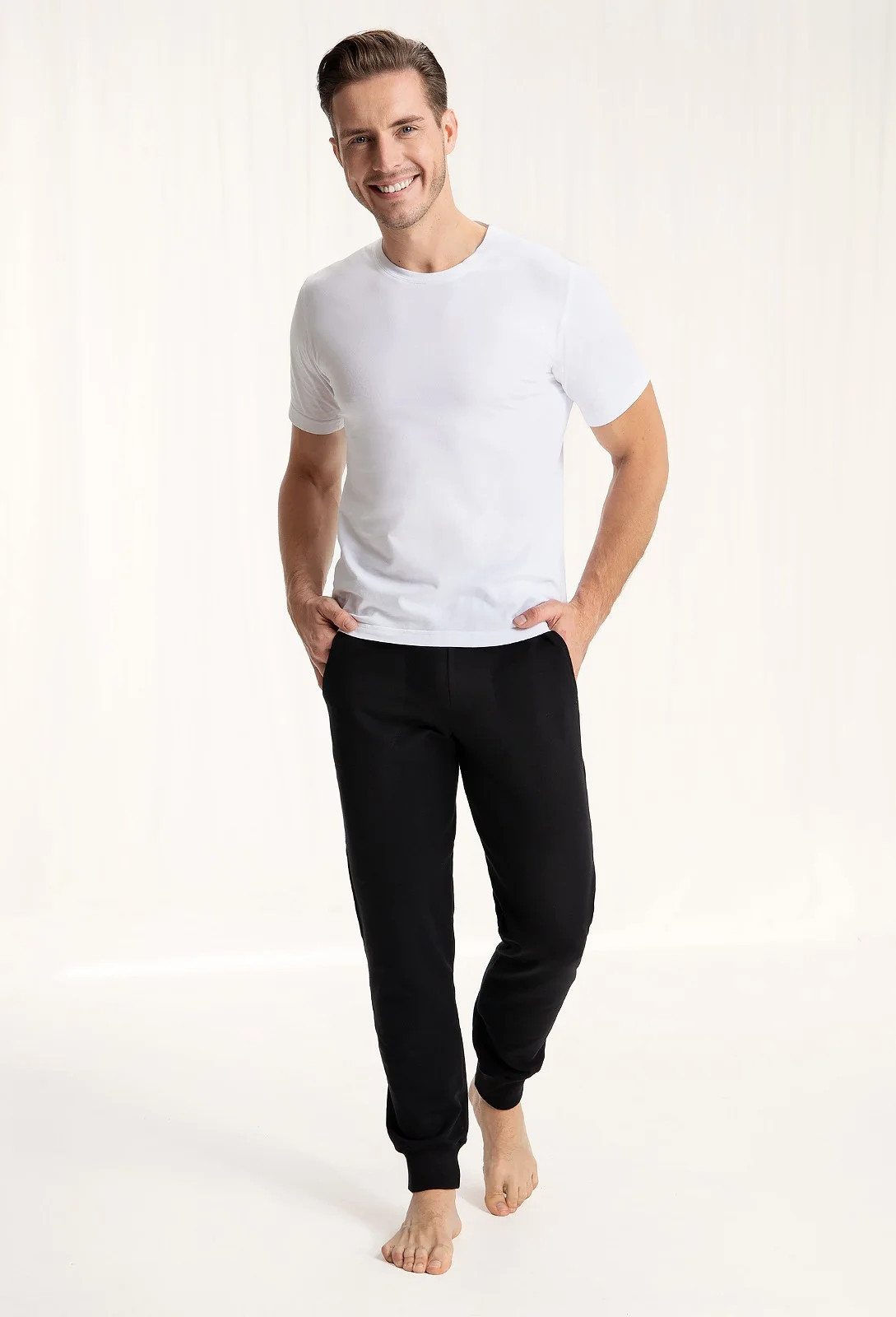 V pase modelu je široká guma obšitá bavlnou. Kalhoty mají pohodlné kapsy. Nohavice jsou olemované stahovacími lemy.
