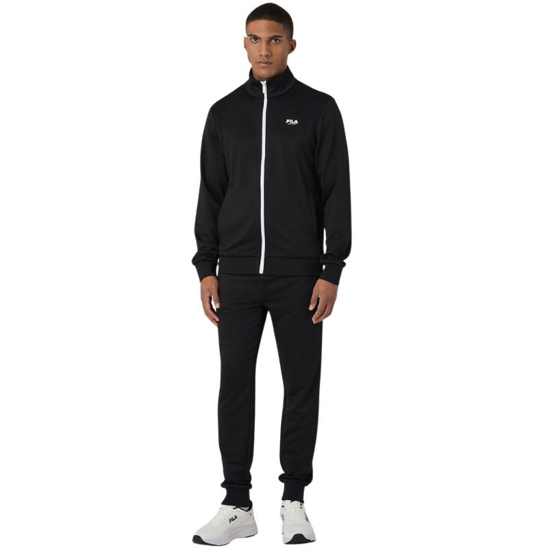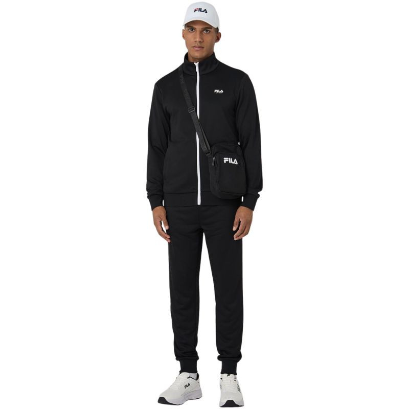 Dres męskie Fila Saluzzo czarny FAM1135 80010 Dres męski Fila sprawdzi się na co dzień. Krój slim. Przyjemna w dotyku tkanina szybko wysycha. Zarówno bluza, jak i spodnie posiadają otwarte kieszenie boczne. Estetyczne ściągacze przy mankietach, w dolnej części bluzy i nogawek. Zamek na całej długości bluzy. Elastyczna talia regulowana sznurkiem. Materiał: 100% poliester