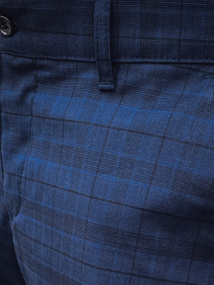 Elegantní námořnicky modré kostkované kalhoty, ideální pro slavnostní příležitosti i každodenní styling. Jsou vyrobeny z vysoce kvalitního materiálu a poskytují celodenní pohodlí. Klasický střih a módní design činí z těchto kalhot skvělou volbu pro pracovní i společenské příležitosti. Jemný detail kostkovaného vzoru dodává jedinečný nádech. Skvěle se hodí k bílým teniskám nebo elegantním botám.