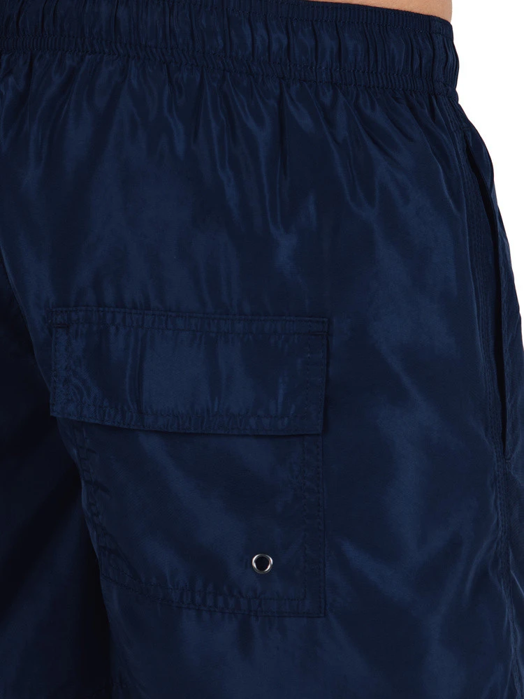 Męskie szorty kąpielowe z lekkiego i szybkoschnącego materiału, idealne na plażę, basen czy aktywność w wodzie. Elastyczny pas z kontrastowym troczkiem zapewnia wygodne dopasowanie. Boczne kieszenie oraz kieszonka z klapką z tyłu dodają praktyczności. Sprawdzą się perfekcyjnie w upalne dni.