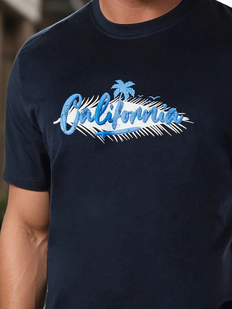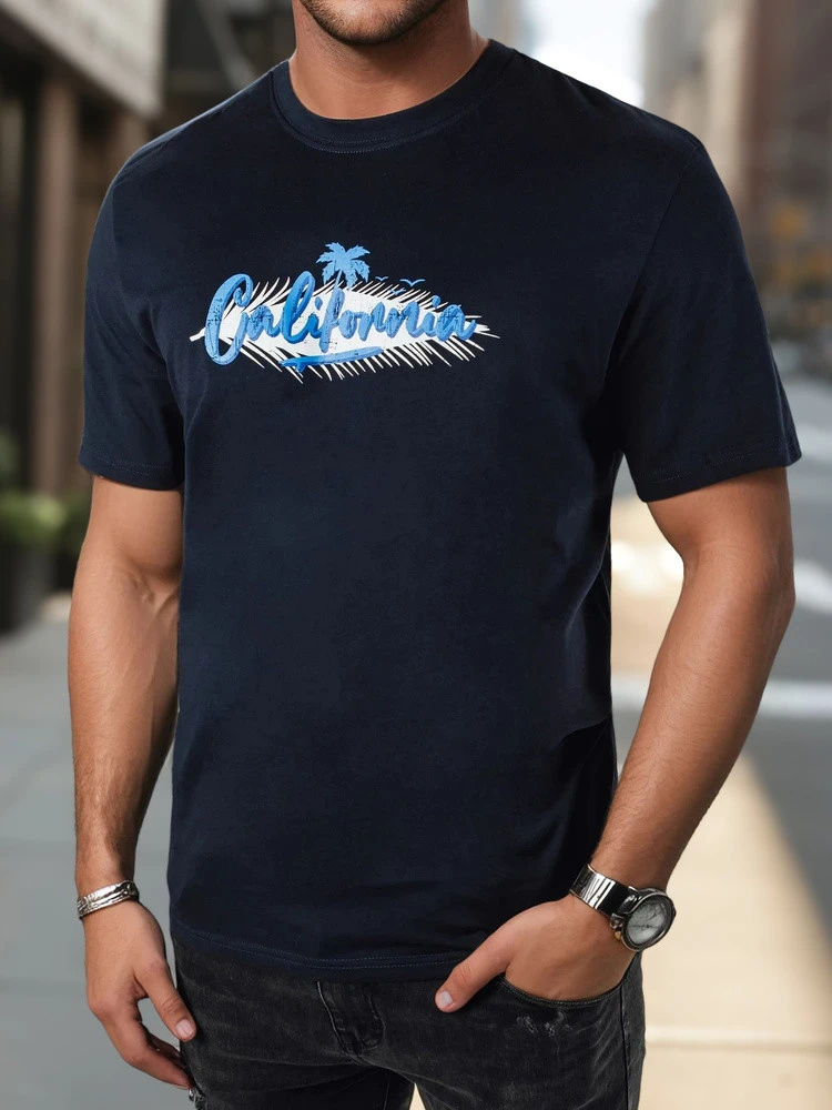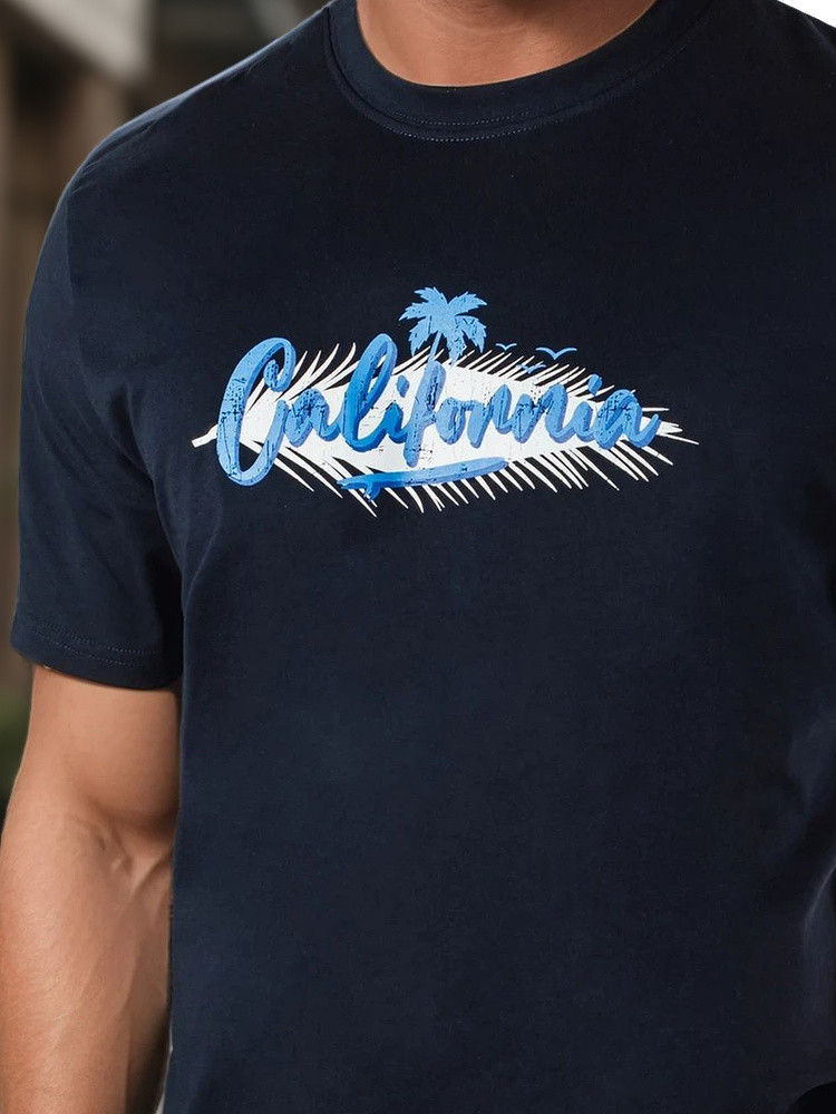 Pánské tmavě modré tričko s potiskem FashionStreet RX5372