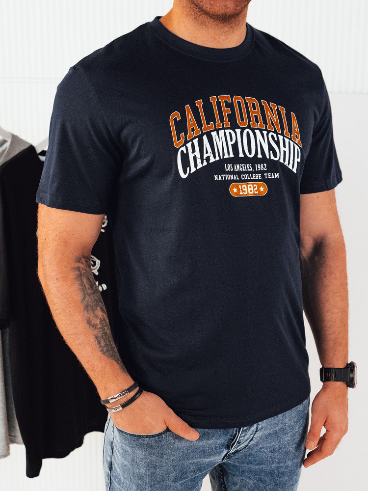 Pánské tmavě modré tričko s potiskem FashionStreet RX5389