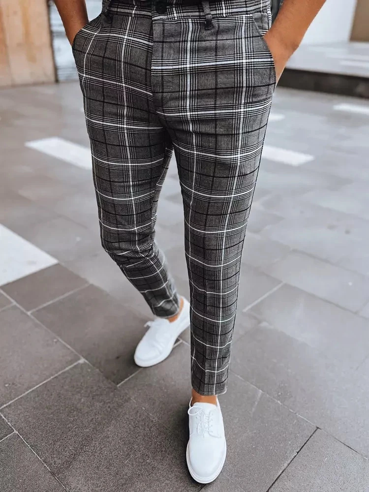 Pánské tmavě šedé kostkované kalhoty FashionStreet UX3957