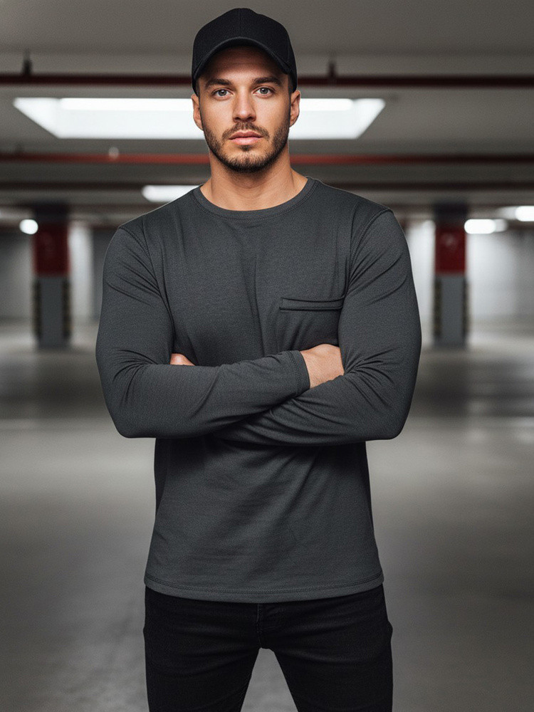 Pánské tmavě šedé tričko s dlouhým rukávem Dstreet model 21967968 - FashionStreet