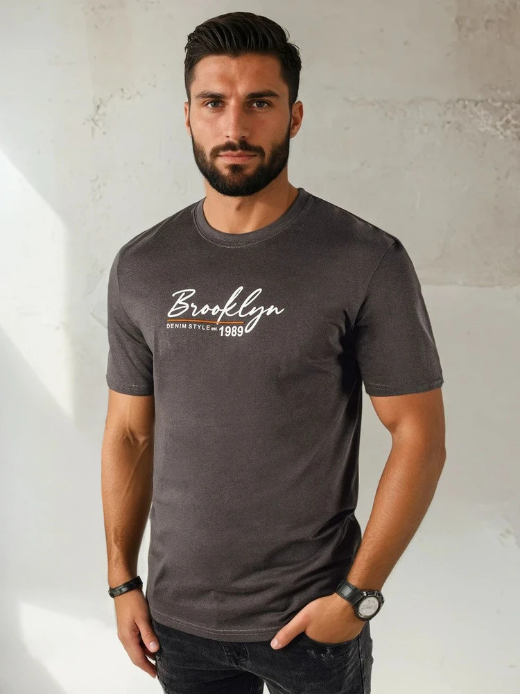 Pánské tmavě šedé tričko s potiskem Dstreet RX5404