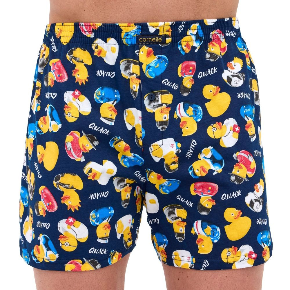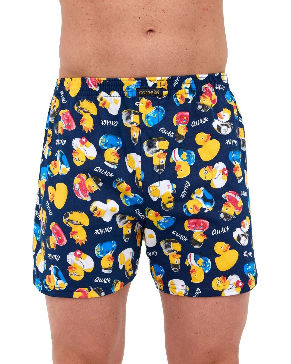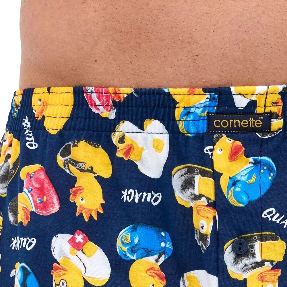 Pánské trenýrky 001/177 Classic CORNETTE - tmavě modrá barva - z vysoce jakostní bavlny - se zábavným potiskem - volný střih modelu je zárukou pohodlí, které potřebuje a ocení každý muž - pohodlná guma v pase je obšitá bavlnou - rozparek se zapíná na knoflíček