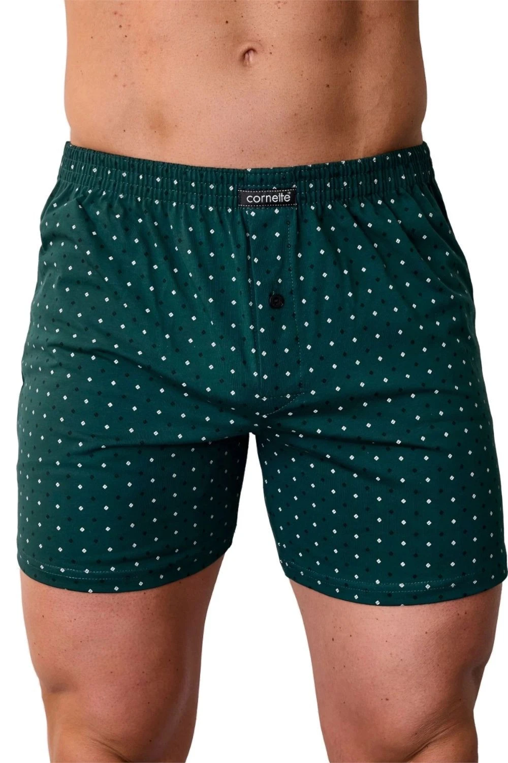 Pánské trenýrky 002/333 Comfort CORNETTE - zelená barva - z vysoce jakostní bavlny - volný střih modelu je zárukou pohodlí, které potřebuje a ocení každý muž - pohodlná guma v pase je obšitá bavlnou - rozparek se zapíná na knoflíček