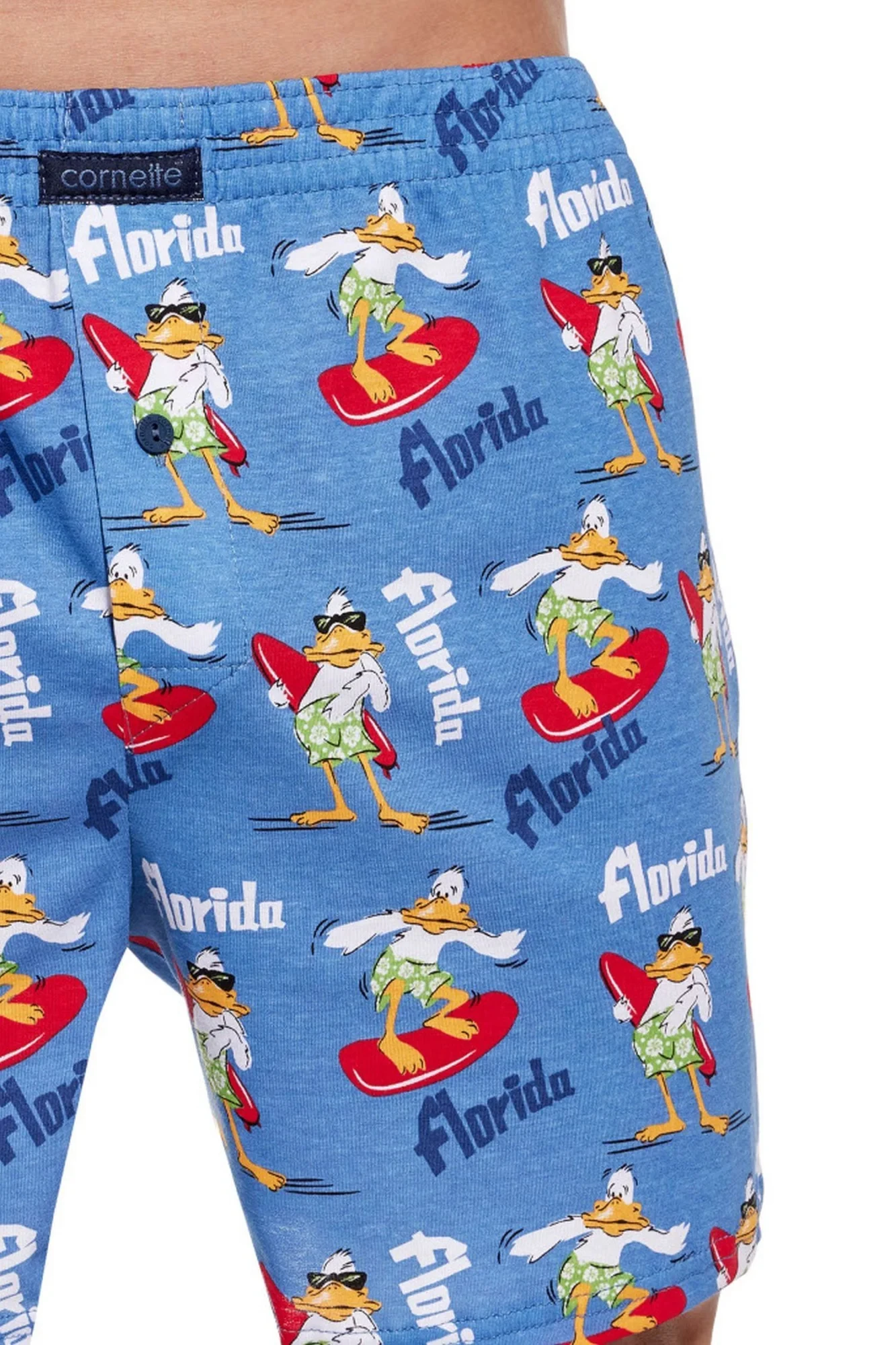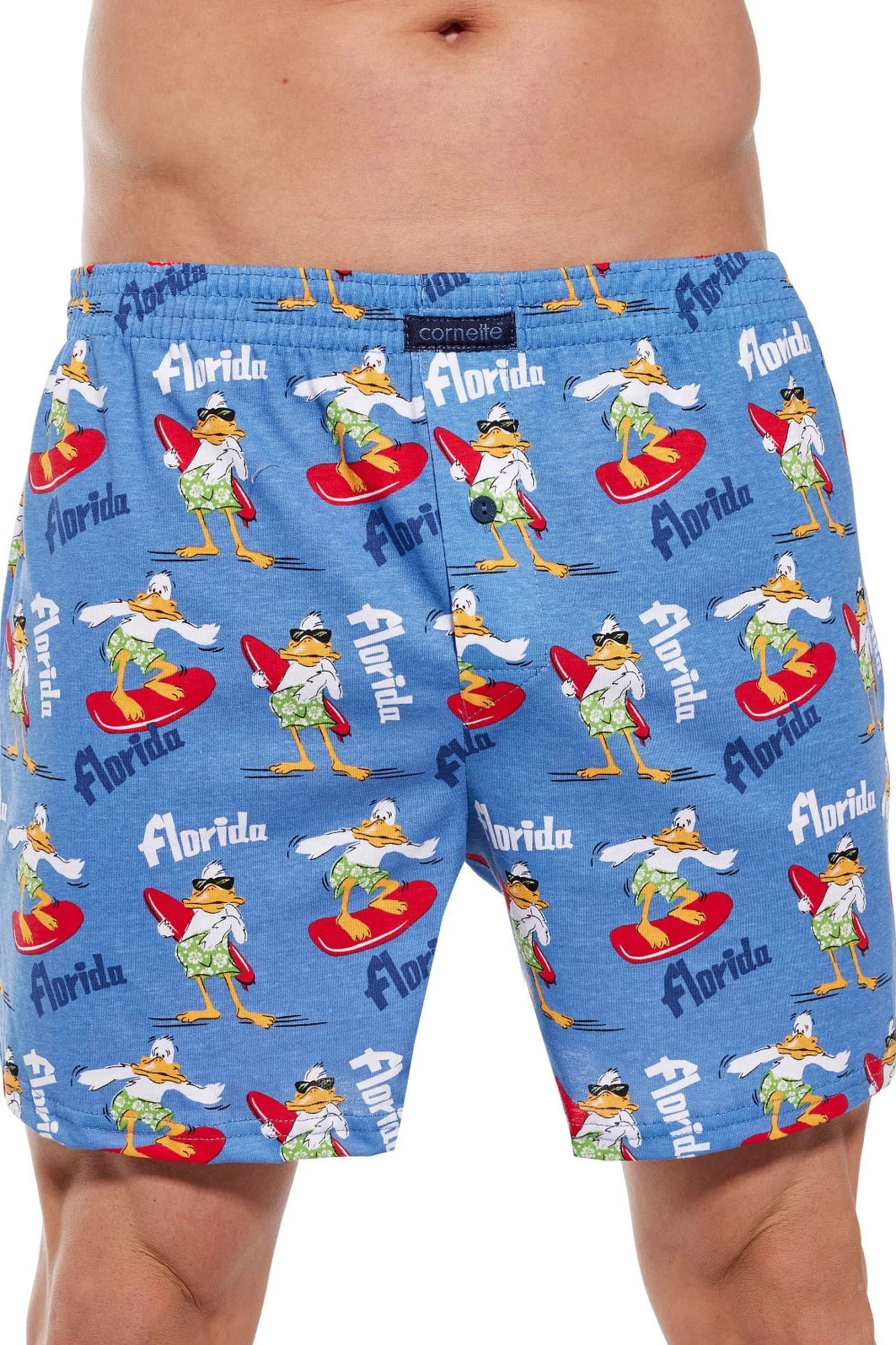 Pánské trenýrky 011/153 Classic plus CORNETTE - světle modrá barva - z vysoce jakostní bavlny - se vzorem - volný střih modelu je zárukou pohodlí, které potřebuje a ocení každý muž - pohodlná guma v pase je obšitá bavlnou - rozparek se zapíná na knoflíček