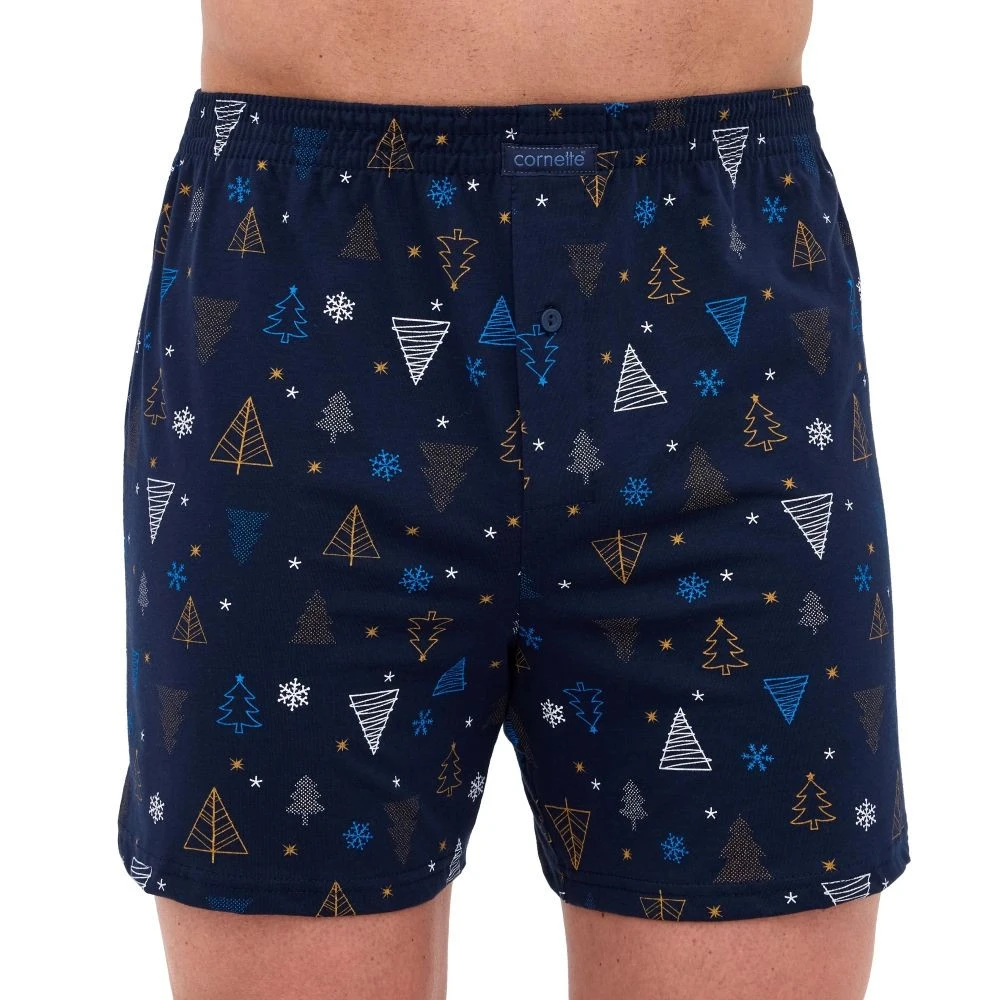 Pánské trenýrky 016/23 Night3 CORNETTE - tmavě modrá barva - volný střih modelu je zárukou pohodlí, které potřebuje a ocení každý muž - pohodlná guma v pase je obšitá bavlnou - rozparek se zapíná na knoflíček - vánoční kolekce
