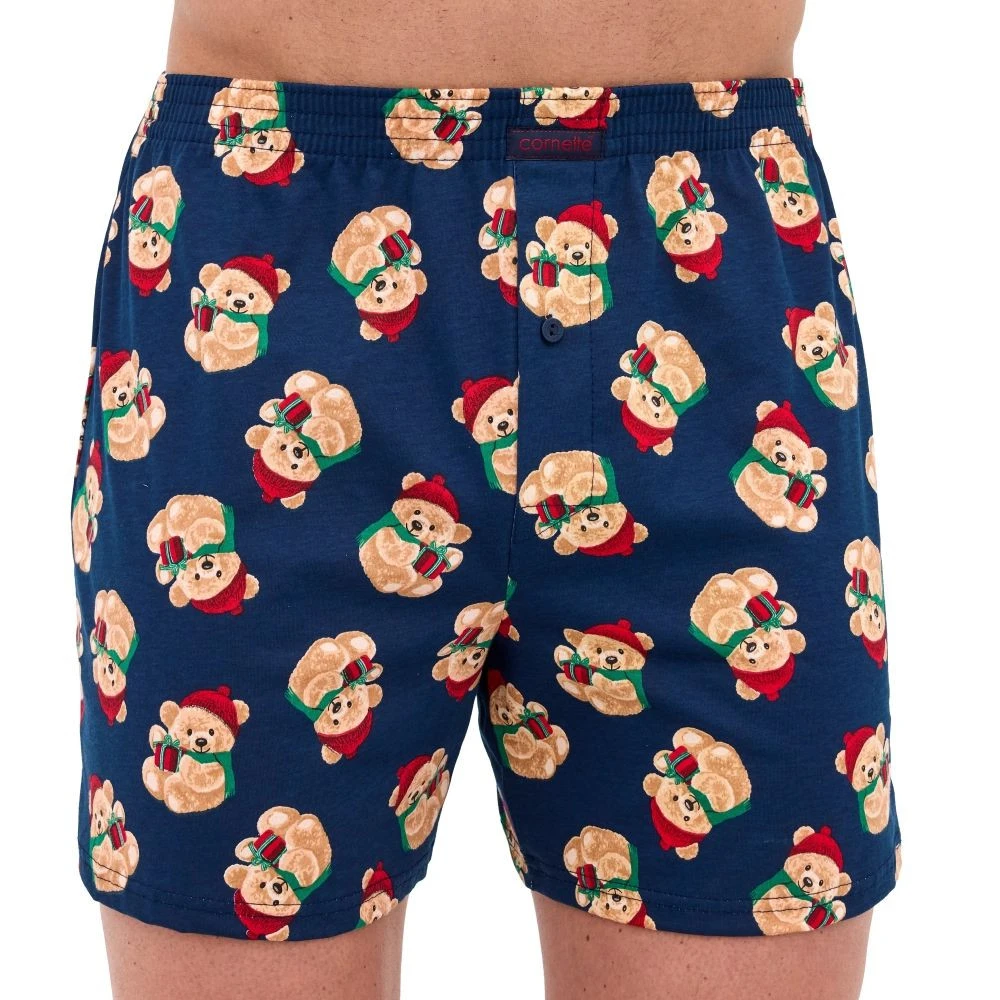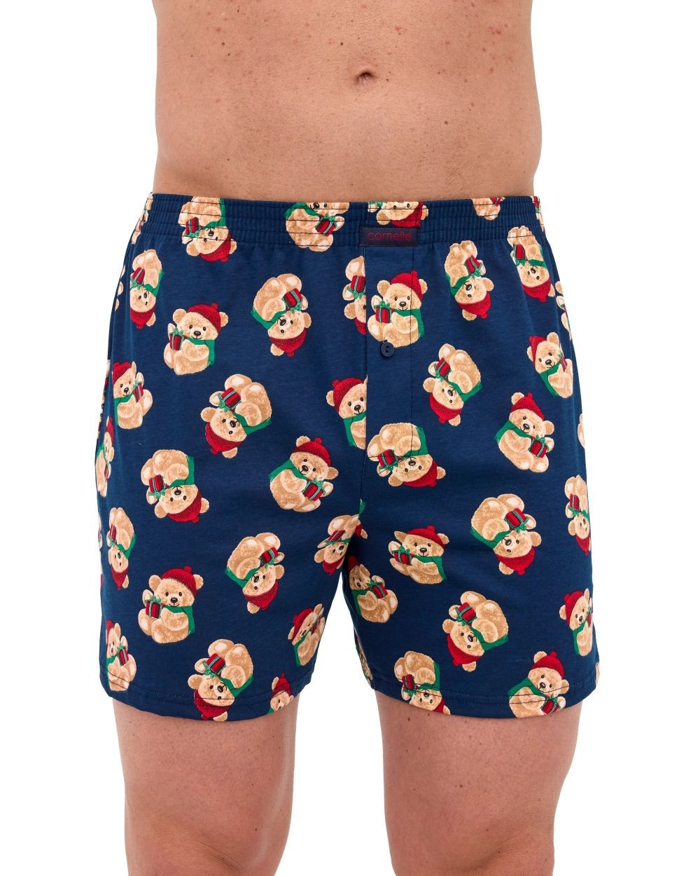 Pánské trenýrky 016/24 Bears2 CORNETTE - tmavě modrá barva - volný střih modelu je zárukou pohodlí, které potřebuje a ocení každý muž - pohodlná guma v pase je obšitá bavlnou - rozparek se zapíná na knoflíček - vánoční kolekce