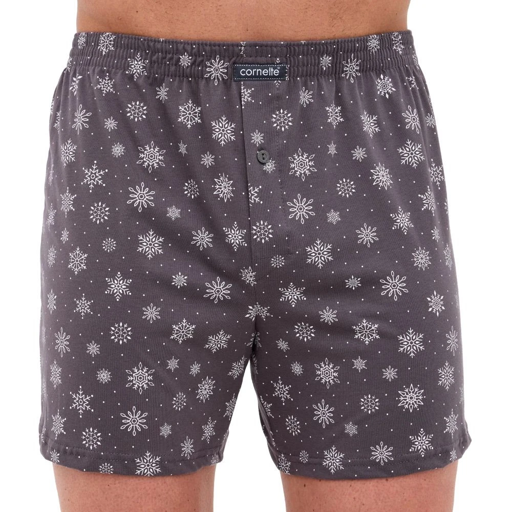 Pánské trenýrky 016/25 Stars CORNETTE - šedá barva - volný střih modelu je zárukou pohodlí, které potřebuje a ocení každý muž - pohodlná guma v pase je obšitá bavlnou - rozparek se zapíná na knoflíček - vánoční kolekceMateriálové složení: 100% bavlna