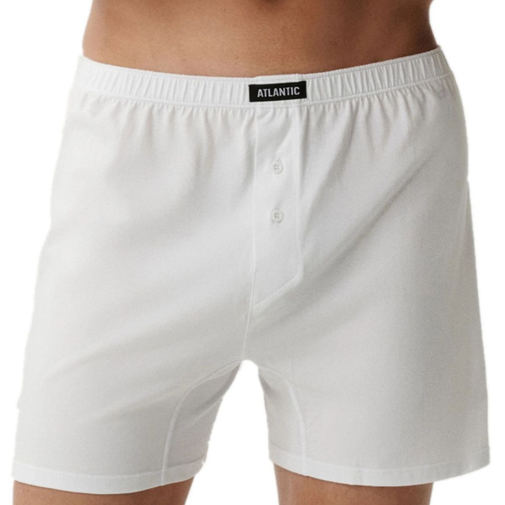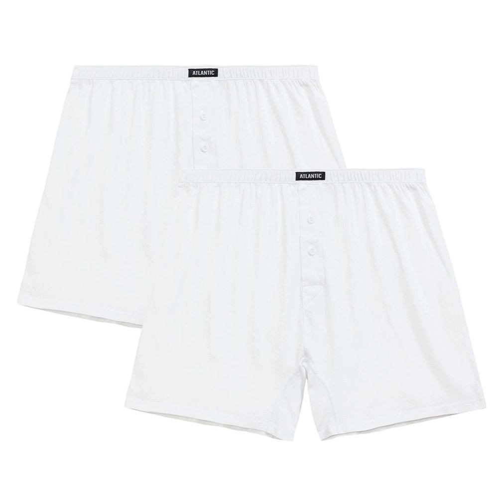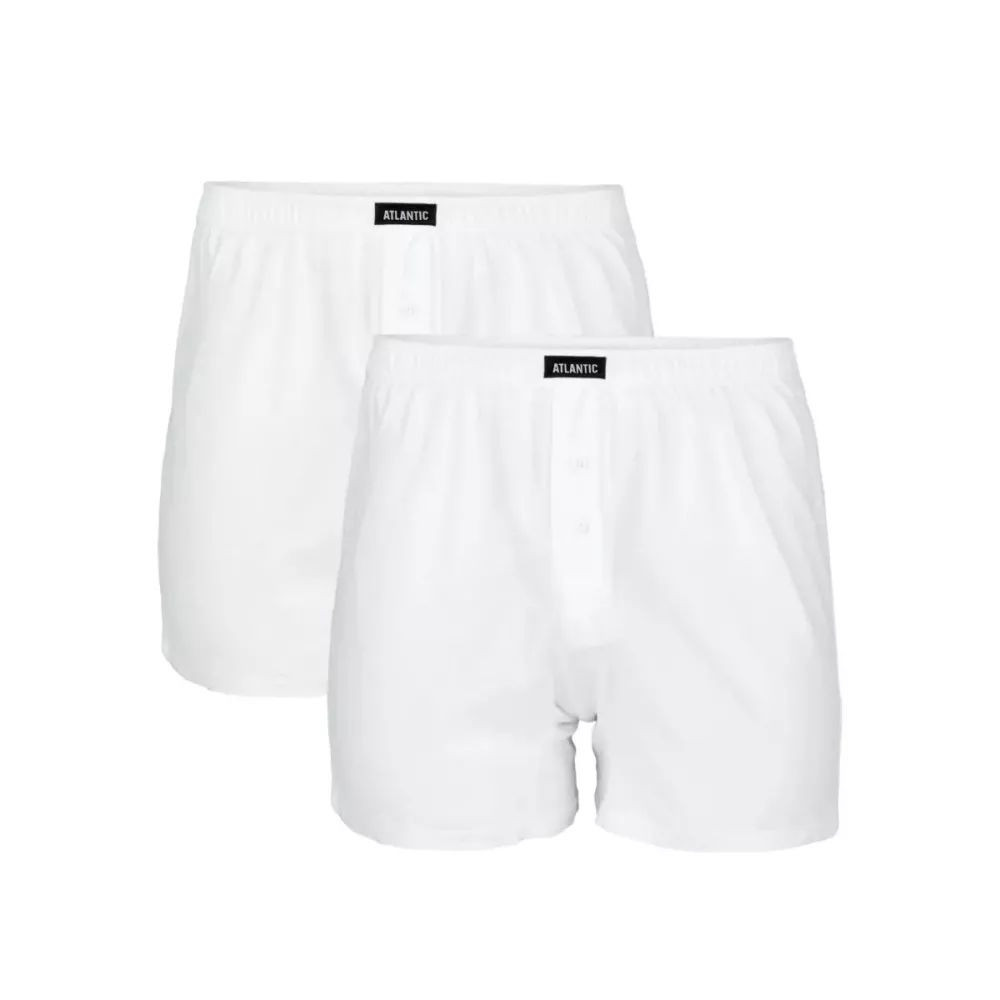 Pánské trenýrky 2 pack 003 white Atlantic - bílá barva - 2ks v balení - z vysoce jakostní bavlny - volný střih modelu je zárukou pohodl - v pase pohodlná guma v tunýlku s logem ATLANTIC - rozparek se zapíná na knoflíček - výhodné balení dvou kusů