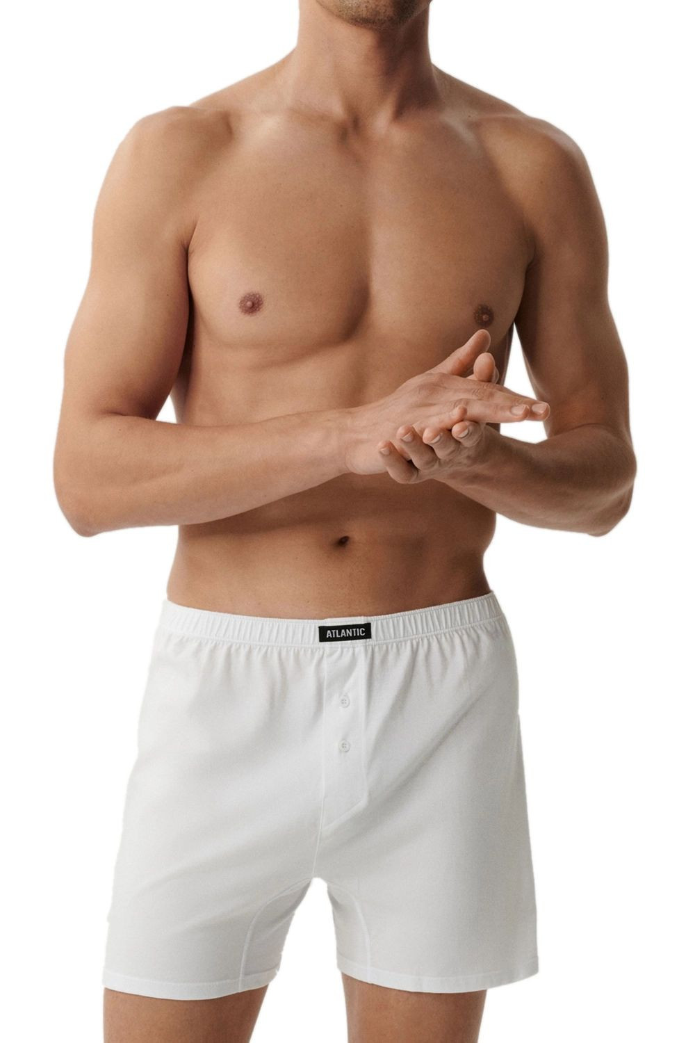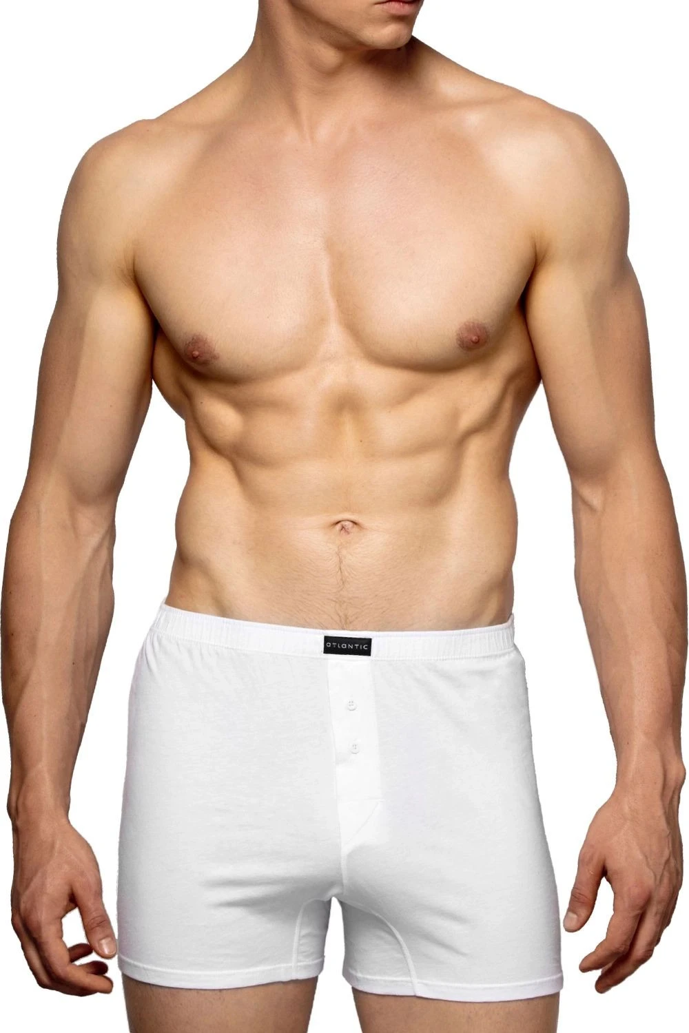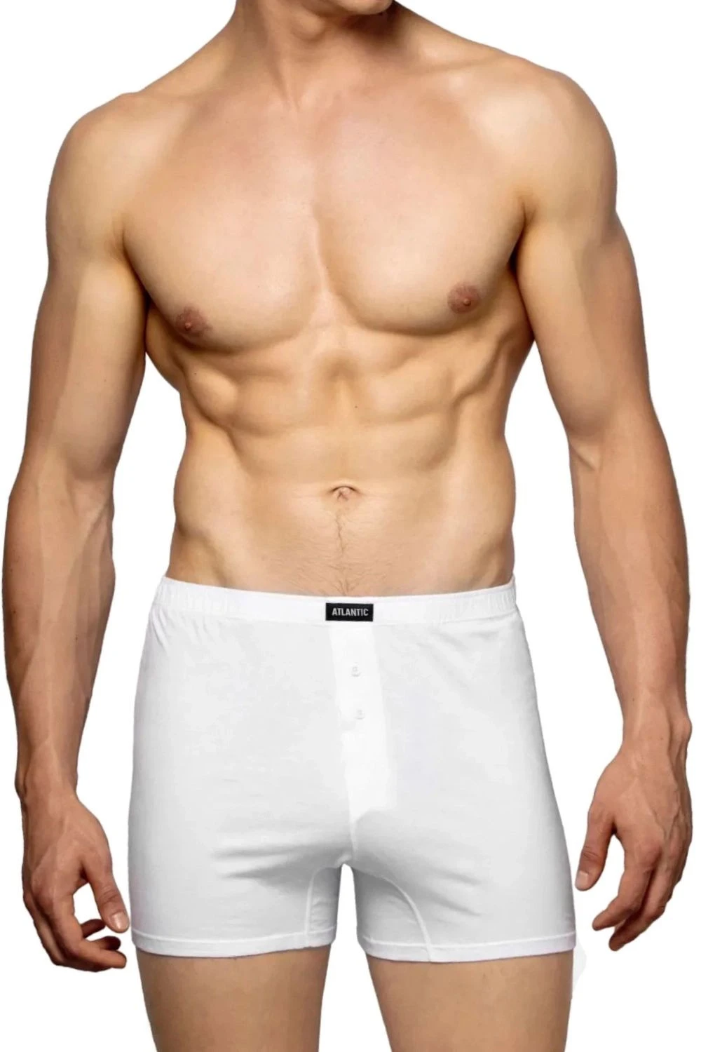 Pánské trenýrky 2 pack 003 white Atlantic - bílá barva - 2ks v balení - z vysoce jakostní bavlny - volný střih modelu je zárukou pohodl - v pase pohodlná guma v tunýlku s logem ATLANTIC - rozparek se zapíná na knoflíček - výhodné balení dvou kusů