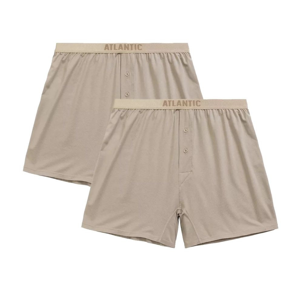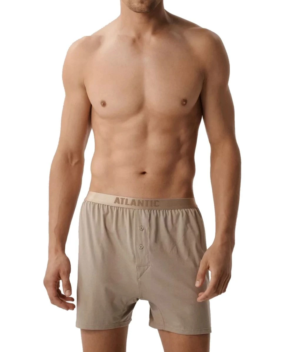 Pánské trenýrky 2 pack 005 beige Atlantic - béžová barva - z vysoce jakostní bavlny - měkká guma s nápisem ATLANTIC - zapínání na knoflík - komfortní a pohodlné