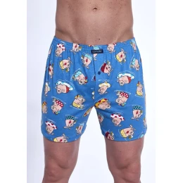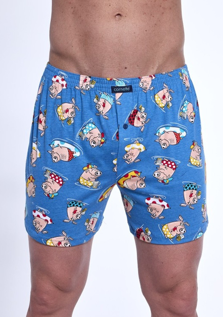 Bavlněné volné trenýrky s veselým motivem od značky Cornette. Trenýrky mají obšitou gumu s nášivkou Cornette na přední části a propínání na knoflíček.