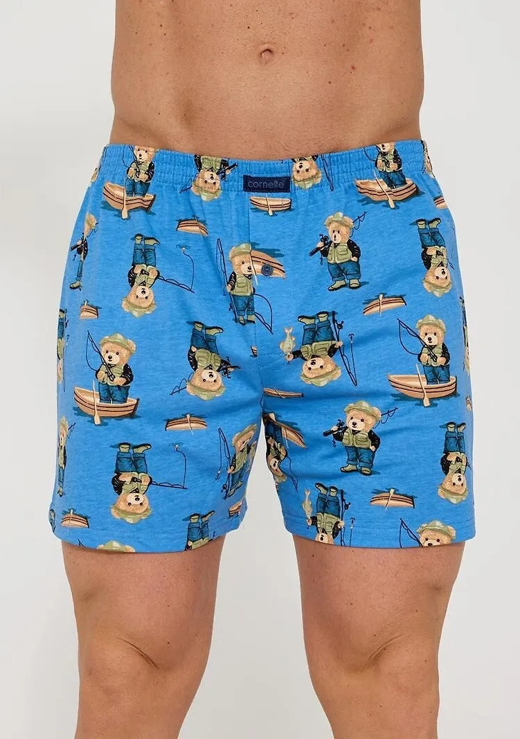 Bavlněné volné trenýrky s veselým motivem od značky Cornette. Trenýrky mají obšitou gumu s nášivkou Cornette na přední části a propínání na knoflíček.