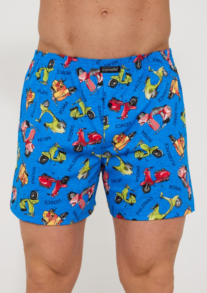 Bavlněné volné trenýrky s veselým motivem od značky Cornette. Trenýrky mají obšitou gumu s nášivkou Cornette na přední části a propínání na knoflíček.