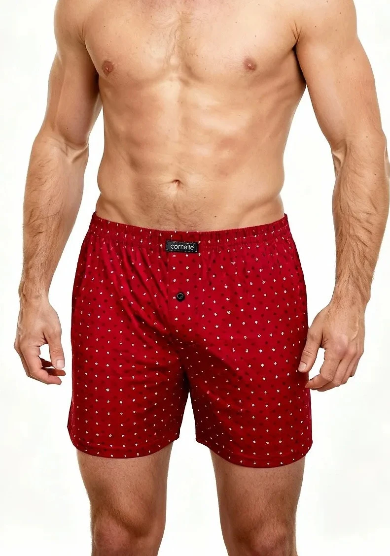 Bavlněné volné trenýrky od značky Cornette. Trenýrky mají obšitou gumu s nášivkou Cornette na přední části a propínání na knoflíček.