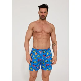 Bavlněné volné trenýrky s veselým motivem od značky Cornette. Trenýrky mají obšitou gumu s nášivkou Cornette na přední části a propínání na knoflíček.