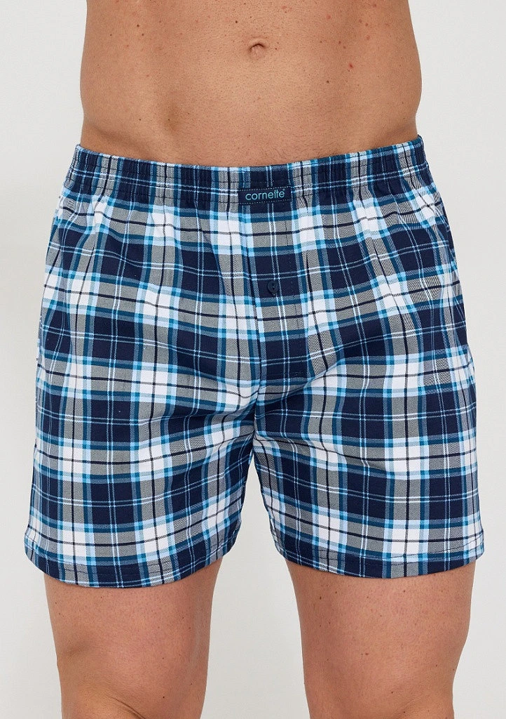Bavlněné volné trenýrky od značky Cornette. Trenýrky mají obšitou gumu s nášivkou Cornette na přední části a propínání na knoflíček.