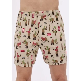 Bavlněné volné trenýrky s veselým motivem od značky Cornette. Trenýrky mají obšitou gumu s nášivkou Cornette na přední části a propínání na knoflíček.