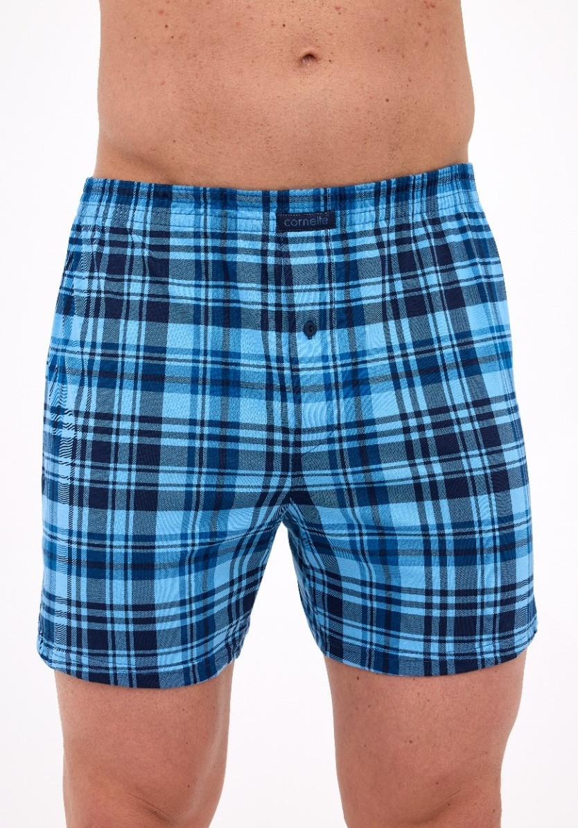 Bavlněné volné trenýrky od značky Cornette. Trenýrky mají obšitou gumu s nášivkou Cornette na přední části a propínání na knoflíček.