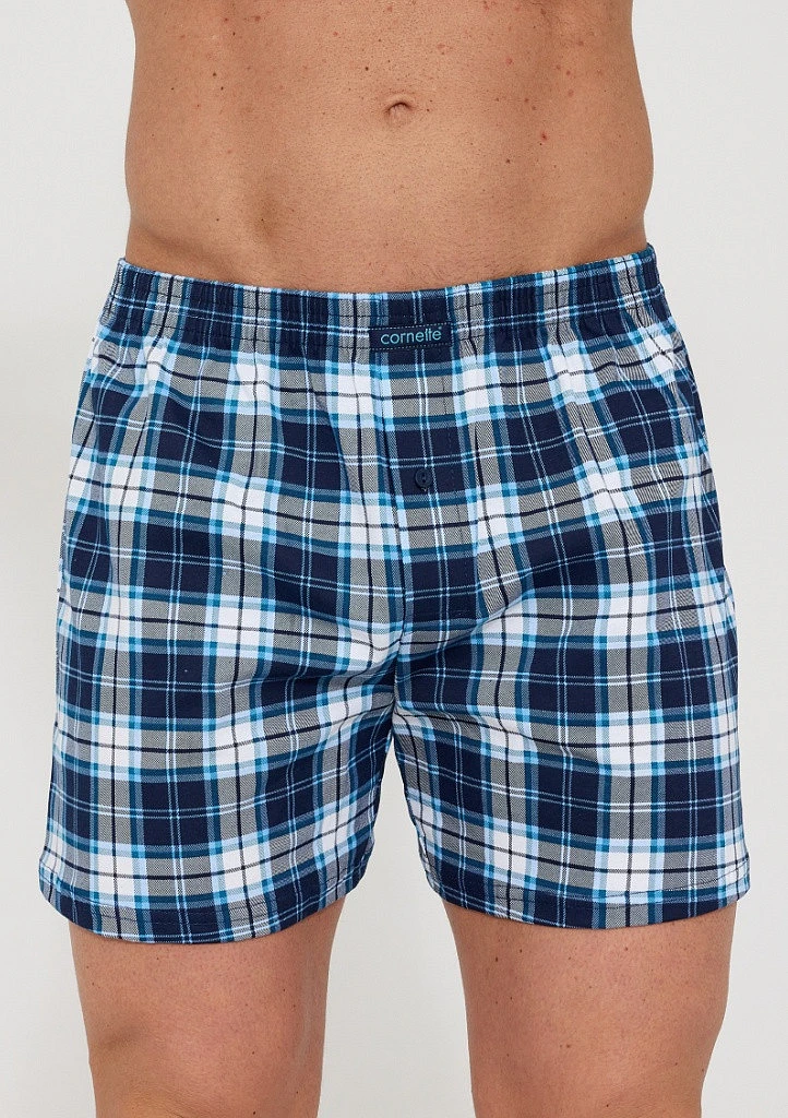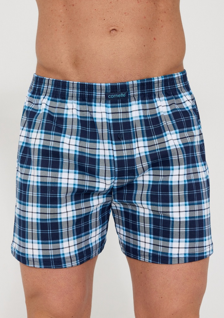 Bavlněné volné trenýrky od značky Cornette. Trenýrky mají obšitou gumu s nášivkou Cornette na přední části a propínání na knoflíček.