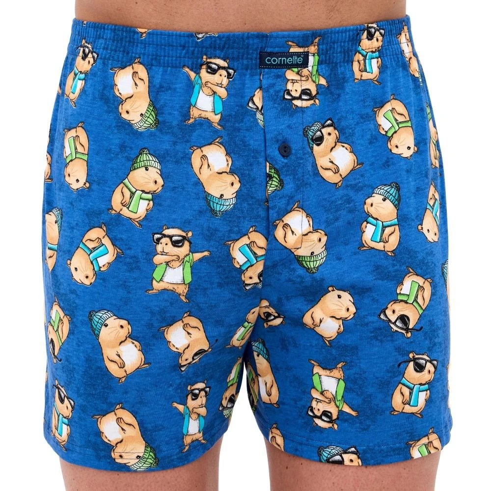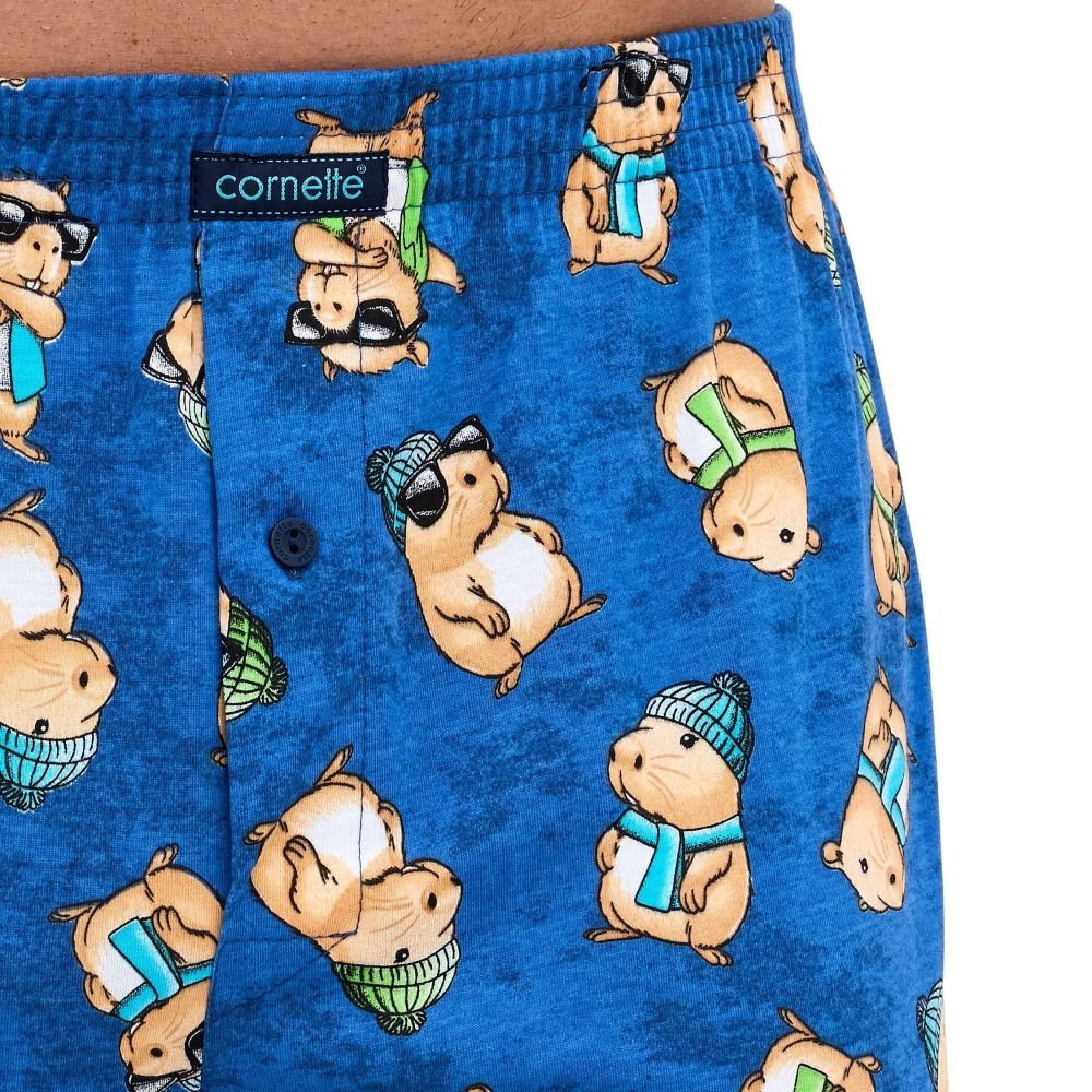 Pánské trenýrky 001/178 Classic CORNETTE - tmavě modrá barva - z vysoce jakostní bavlny - se zábavným potiskem - volný střih modelu je zárukou pohodlí, které potřebuje a ocení každý muž - pohodlná guma v pase je obšitá bavlnou - rozparek se zapíná na knoflíček