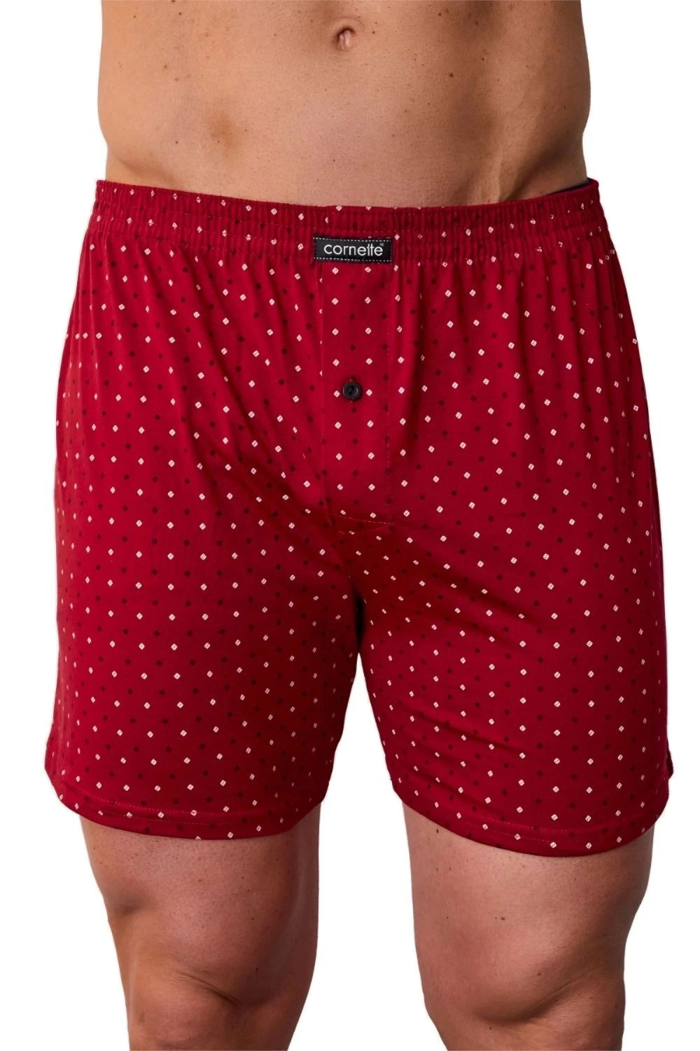 Pánské trenýrky 002/334 Comfort CORNETTE - bordó barva - z vysoce jakostní bavlny - volný střih modelu je zárukou pohodlí, které potřebuje a ocení každý muž - pohodlná guma v pase je obšitá bavlnou - rozparek se zapíná na knoflíček