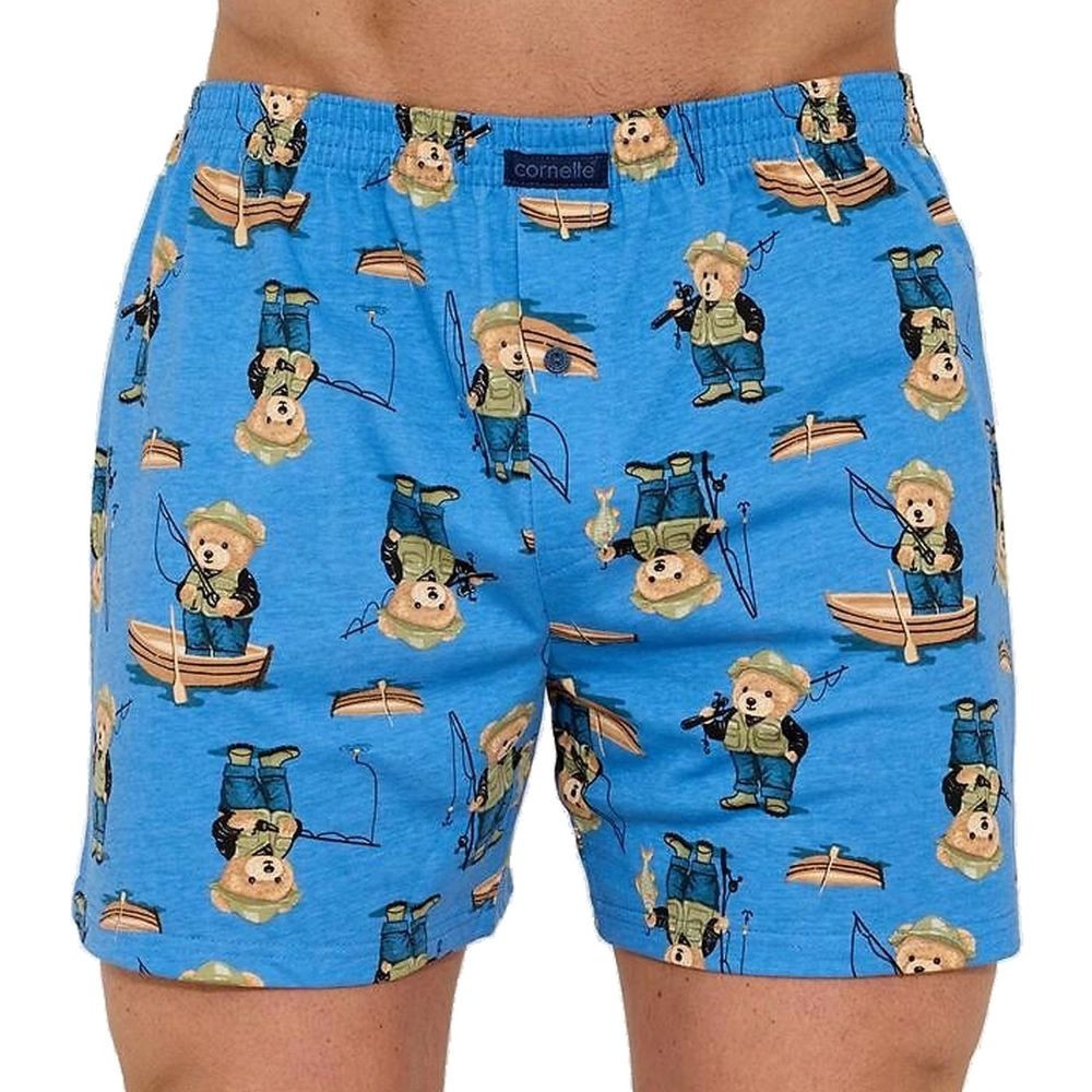 Pánské trenýrky 011/188 Classic plus CORNETTE - světle modrá barva - z vysoce jakostní bavlny - se vzorem - volný střih modelu je zárukou pohodlí, které potřebuje a ocení každý muž - pohodlná guma v pase je obšitá bavlnou - rozparek se zapíná na knoflíček