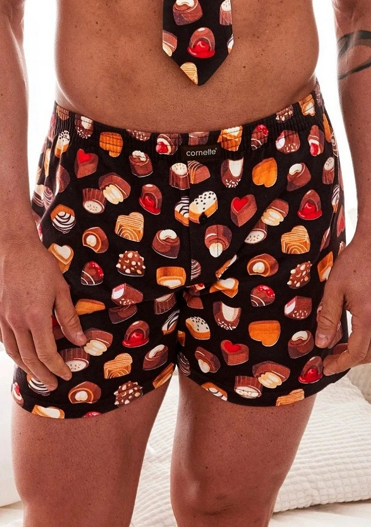 Bavlněné volné trenýrky s veselým motivem od značky Cornette. Trenýrky mají obšitou gumu s nášivkou Cornette na přední části a propínání na knoflíček.