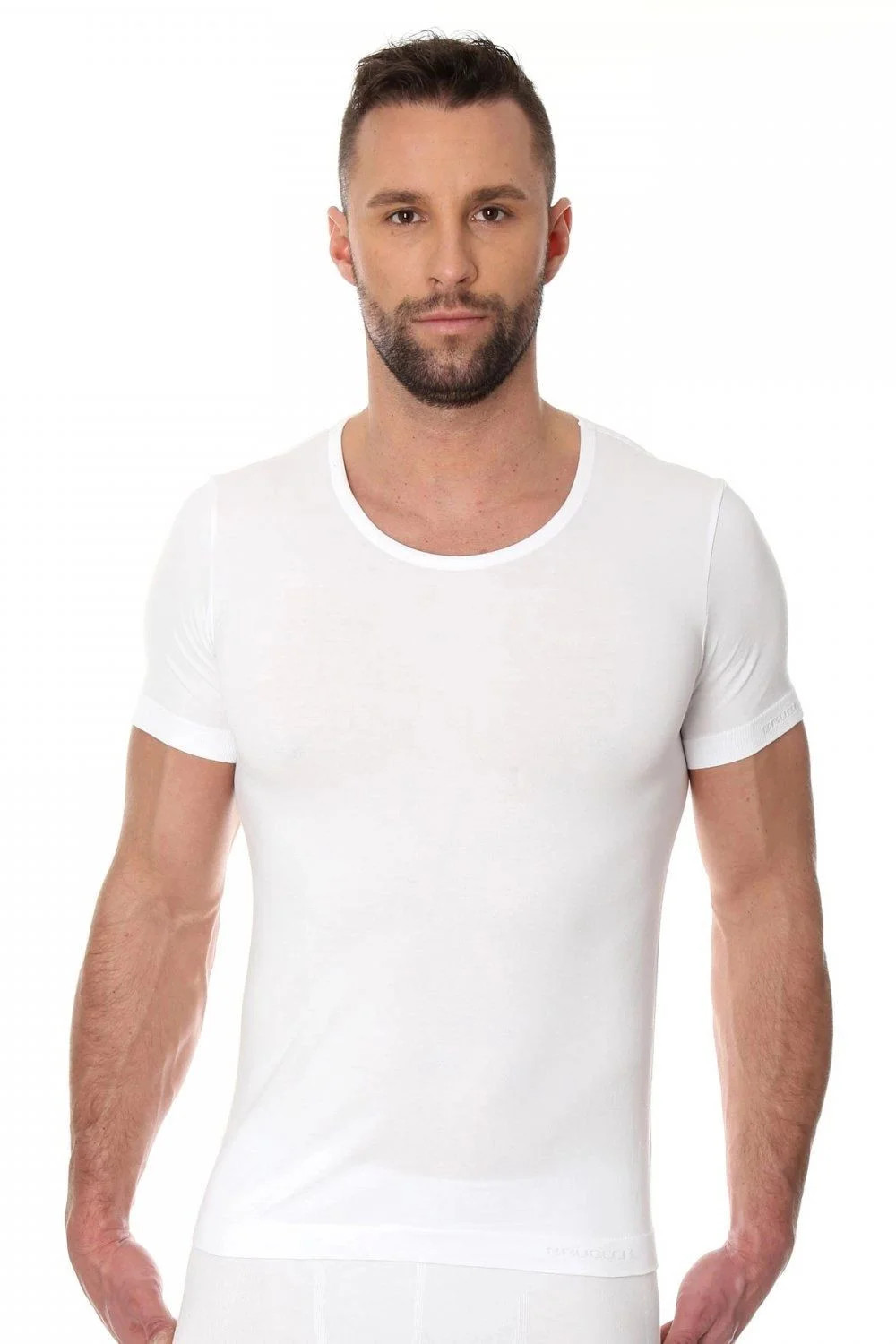Pánské tričko 00990A white BRUBECK - bílá barva - s krátkými rukávy - vyrobené bezešvou technologii -.ideálně přiléhá k tělu a je velmi pohodlné -.bezešvé prádlo určené především na sportovní aktivity -.firma Brubeck BodyGuard se zabývá výrobou oblečení pro extrémní sporty a využívá nejnovější technologie