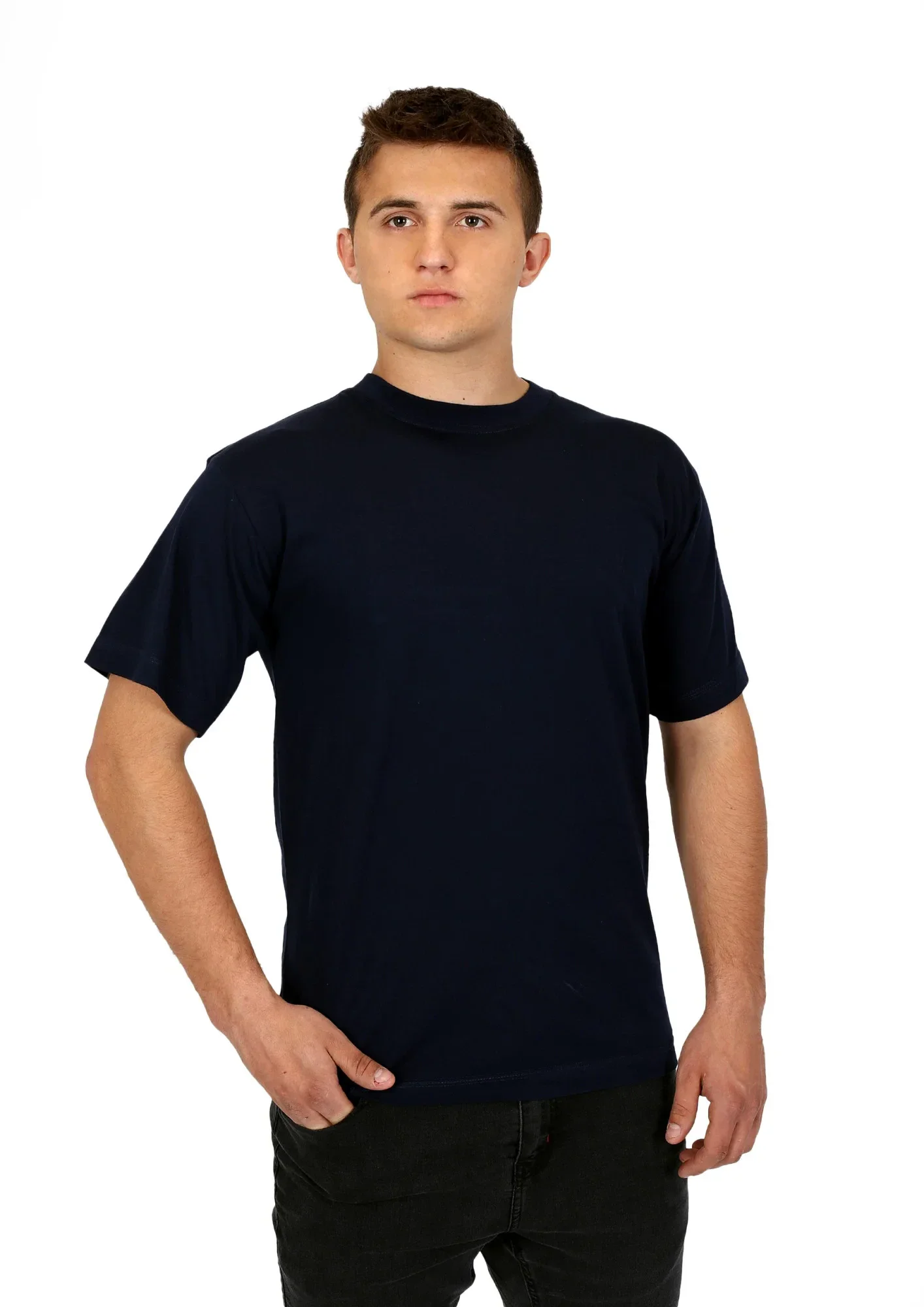 Pánské tričko s krátkými rukávy, ušité z kvalitní bavlny. Má polokulatý výstřih. Je pohodlné a komfortní při nošení.
