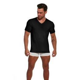 Pánské tričko Authentic 201 Cornette - je ušité z kvalitní bavlny - s krátkým rukávem - výstřih ve tvaru V - dvojité švy na rukávech a na spodním okraji